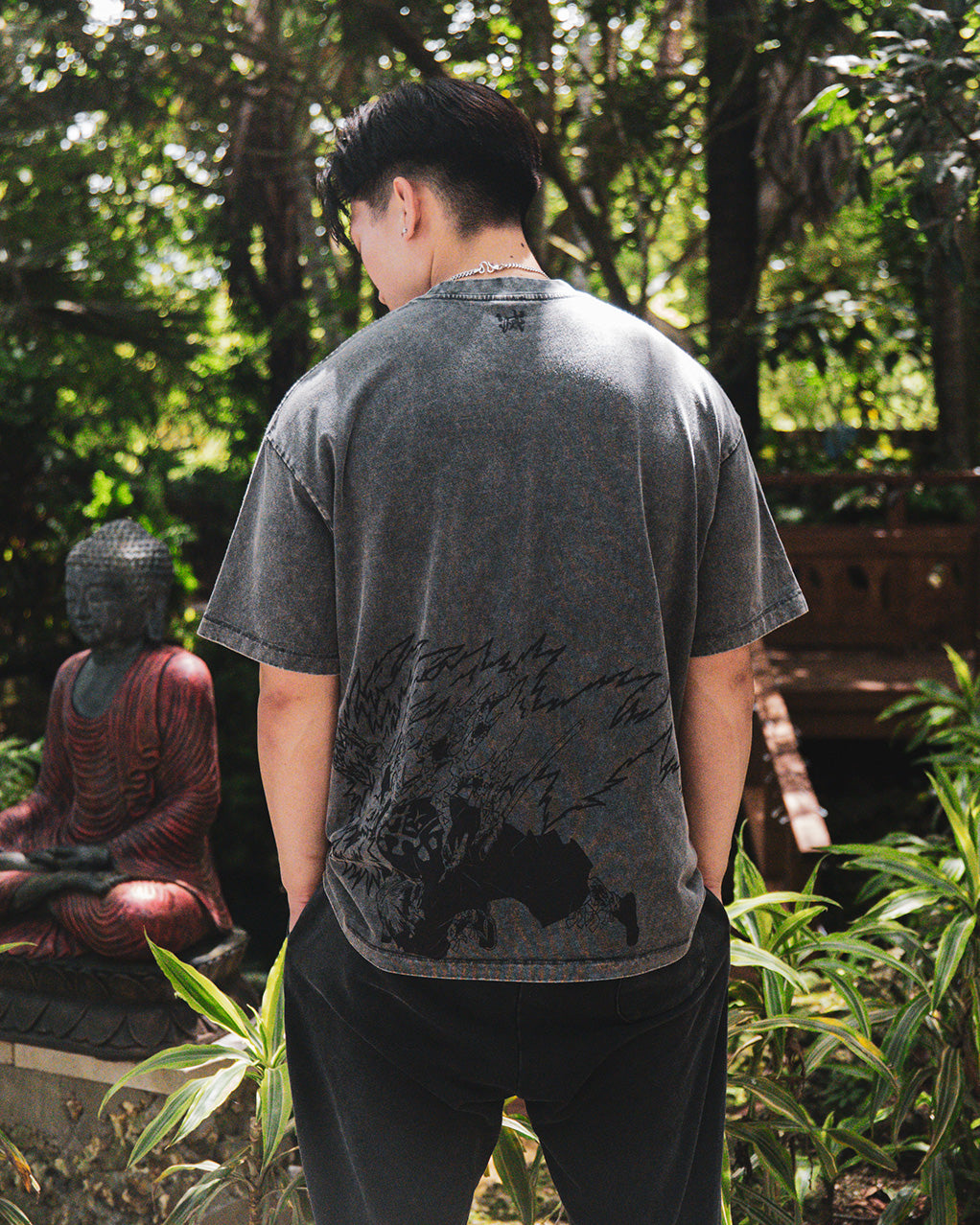DESIGN: 3" embroidery with direct-to-garment print on the front, and a direct-to-garment print on the back.