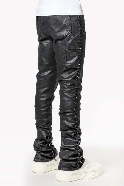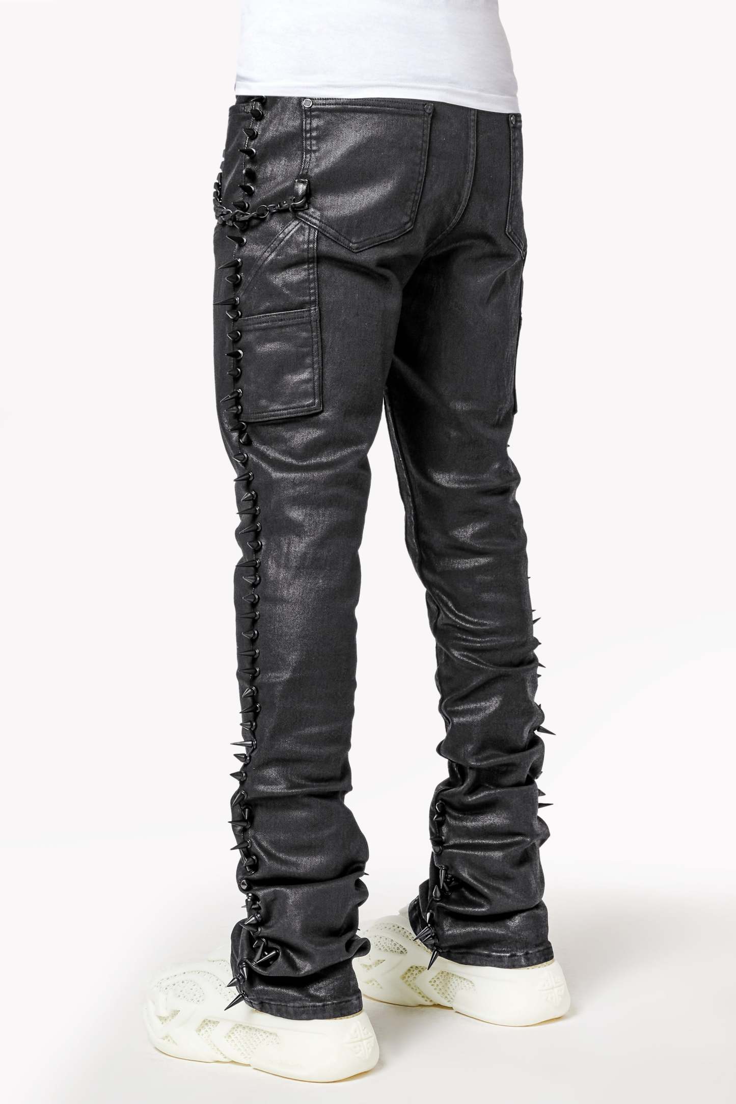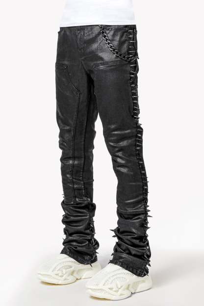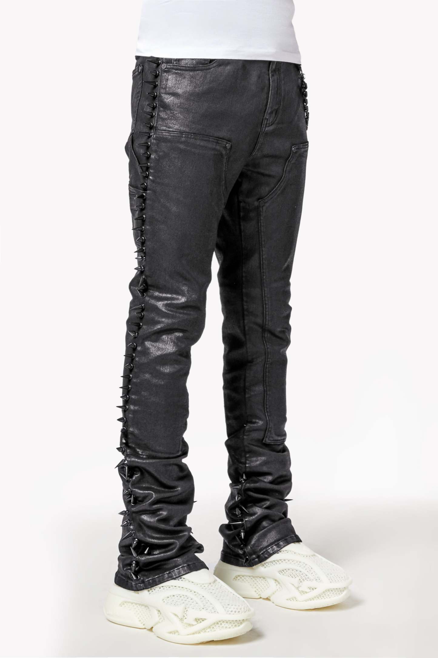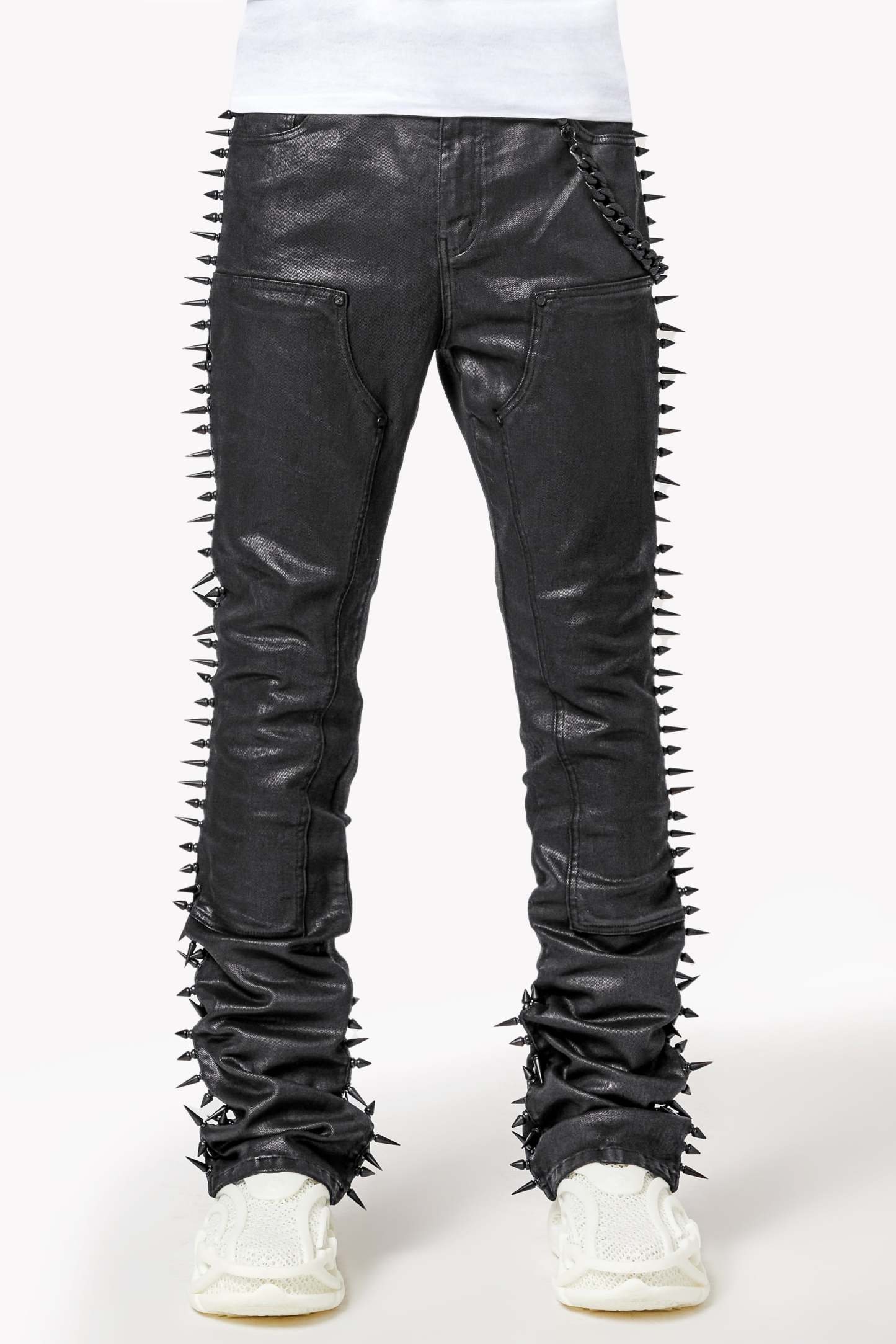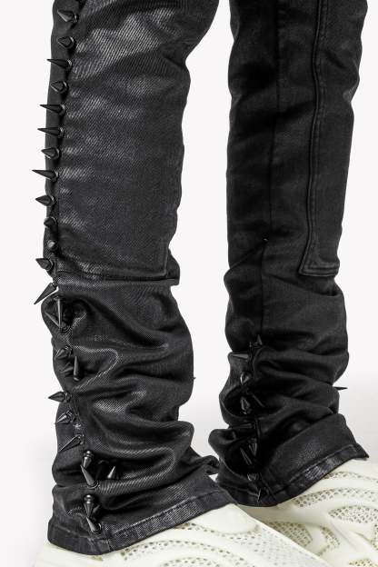The All Black Spikes Denim is a sleek and daring addition to any wardrobe, combining a striking all-black aesthetic with edgy metal spike details. Designed with a waxed finish for a smooth, high-shine texture and a stacked fit for a modern silhouette, this denim piece redefines contemporary streetwear with bold, unapologetic style.