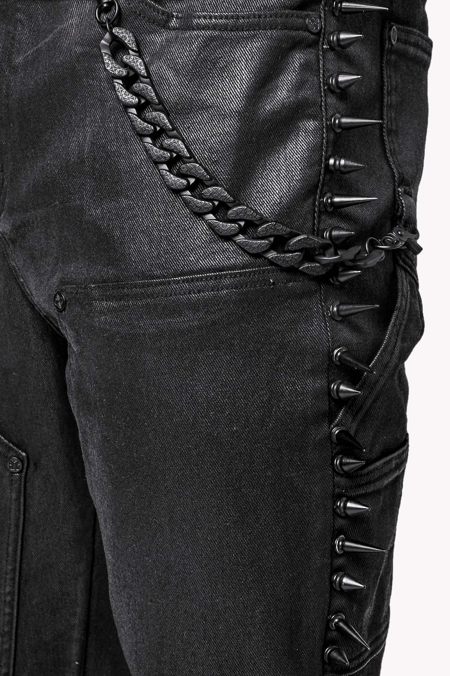 The All Black Spikes Denim is the ultimate blend of bold design and sophisticated streetwear, perfect for those who embrace confident and edgy fashion.
