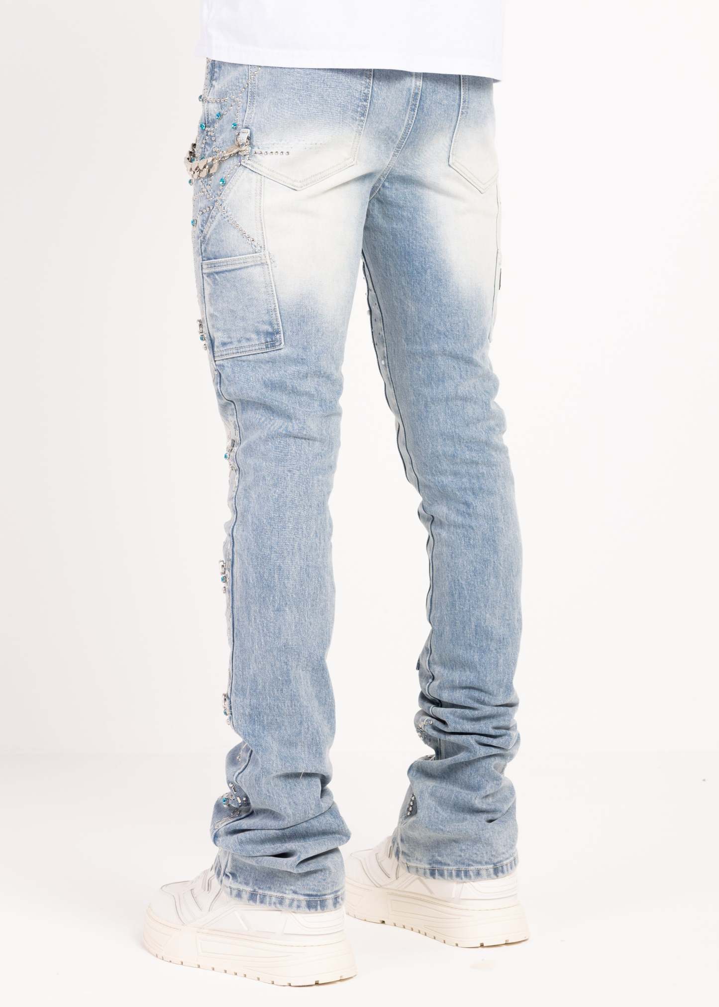 The Aqua Blue Spider Denim delivers a clean flex with precision detail. Cut in a cool aqua-blue wash, this pair balances a vintage fade with sharp, modern energy—built for fits that need one standout piece, not loud layering.