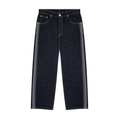 14,5oz denim / 100% cotton / embroidery on sides and back / embroidered leather patch / custom button / wash inside out / fits true to size