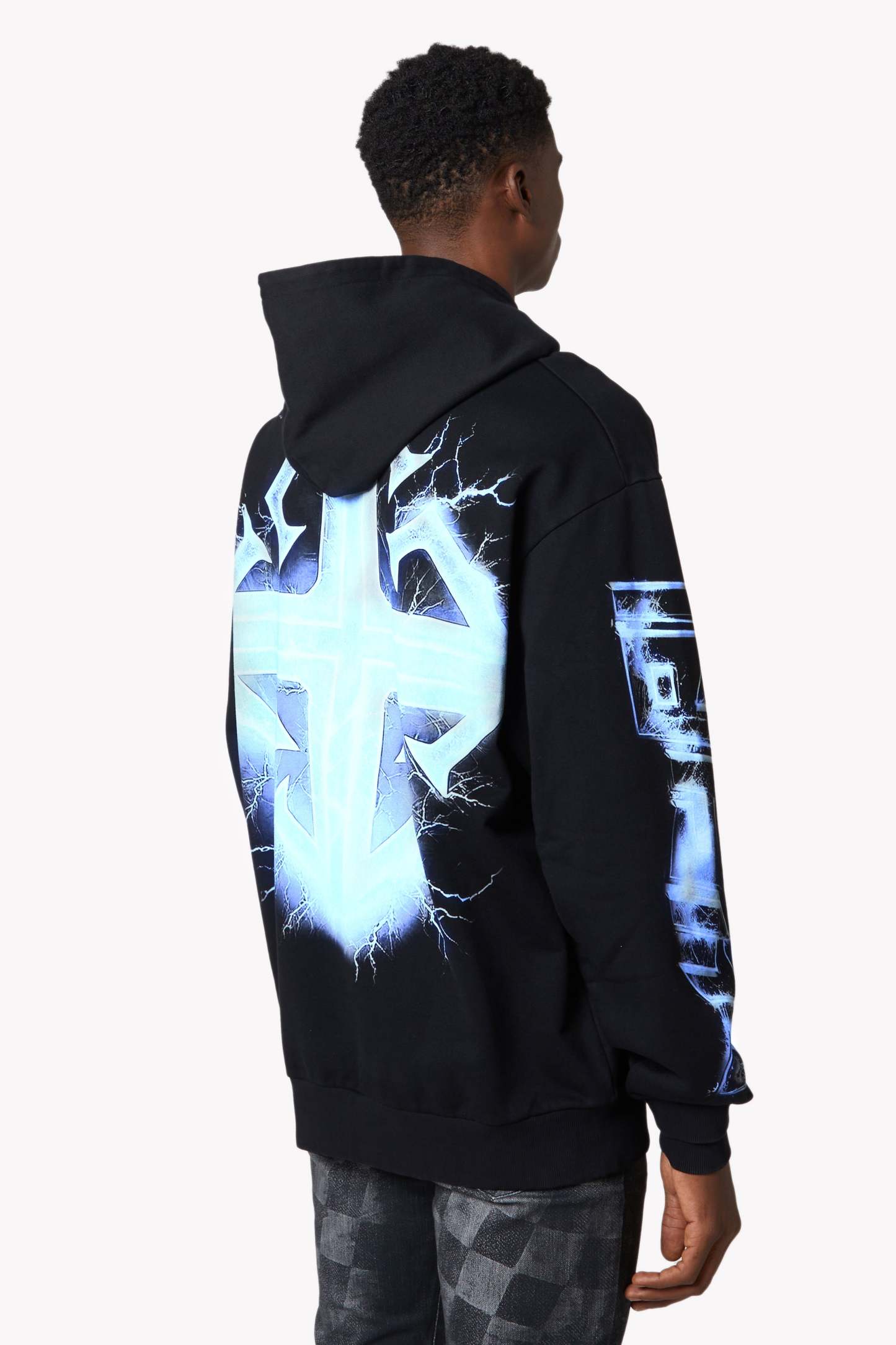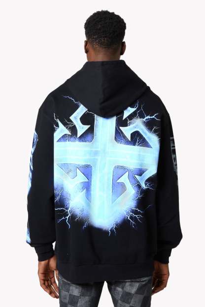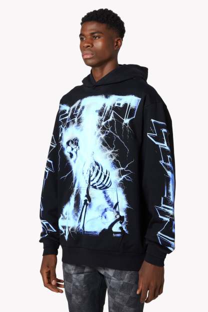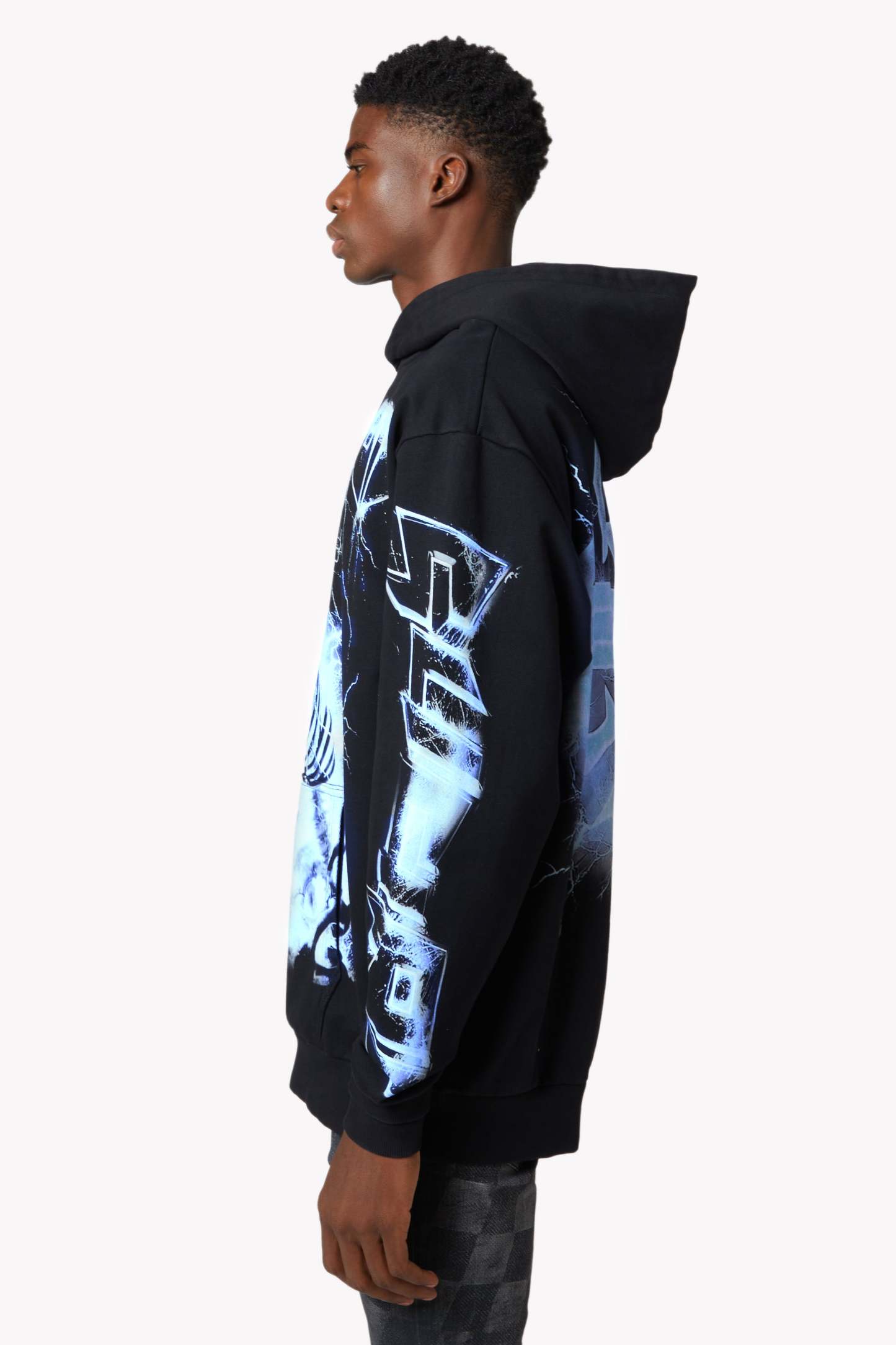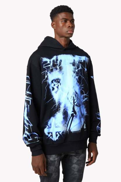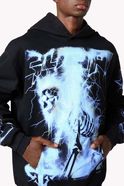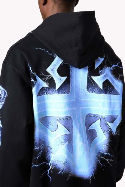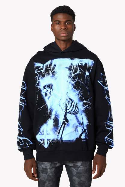The Black Revived Hoodie V2 amplifies the energy of the original design with a sharper, more vivid electric-blue glow that ignites its bold graphics. Constructed from heavyweight cotton, this oversized silhouette is built for comfort and impact, making it a standout piece in any streetwear rotation.