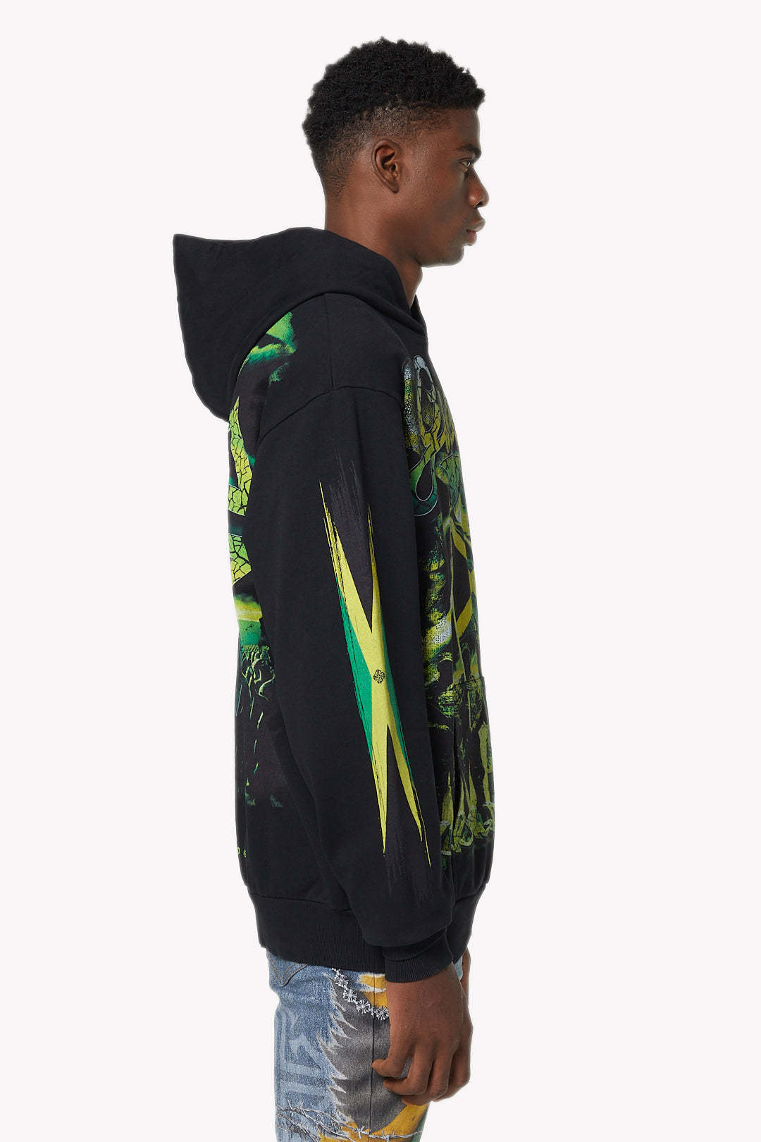 - Oversized graphic hoodie in premium black cotton