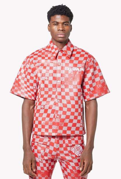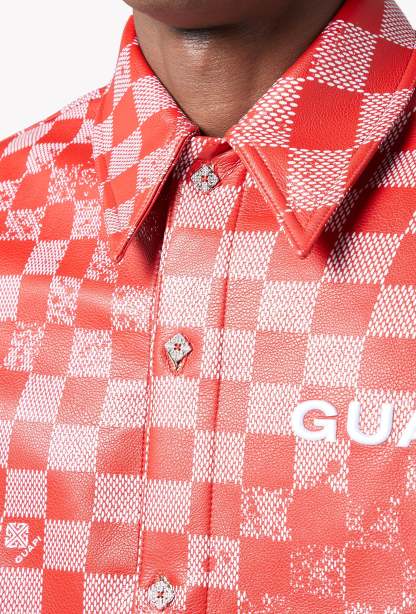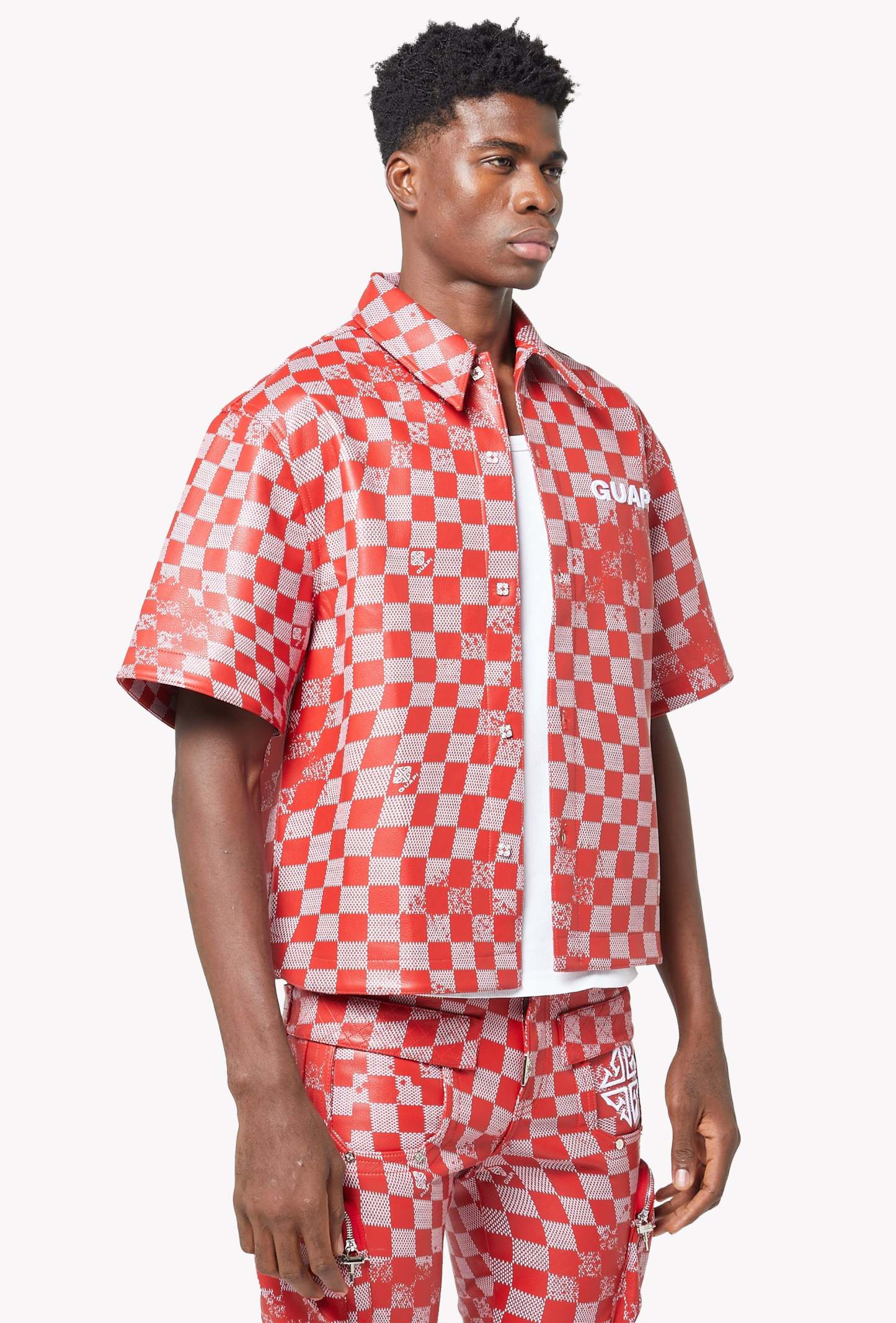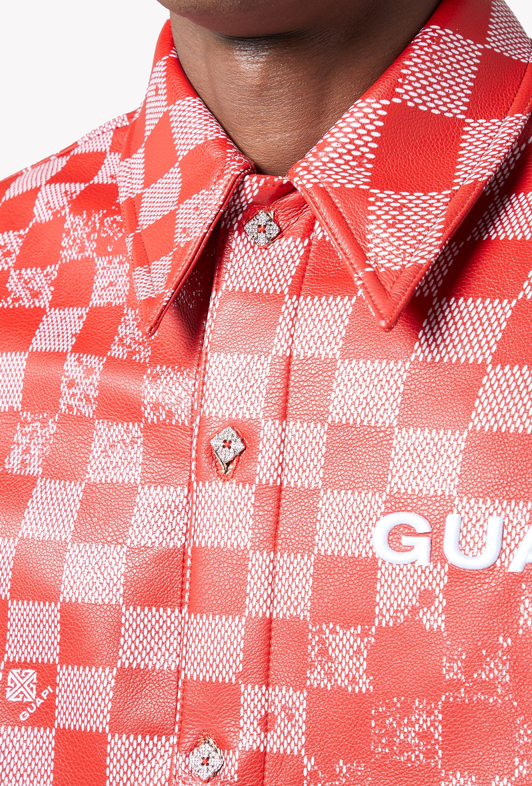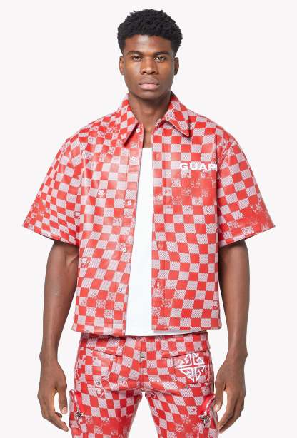 The Blood Red Checkerboard Leather Shirt is a bold, high-impact statement piece crafted in GUAPI’s signature reimagined leather. Designed to match the Blood Red Checkerboard Leather Pant, this shirt blends luxury craftsmanship with a loud, rebellious attitude.
