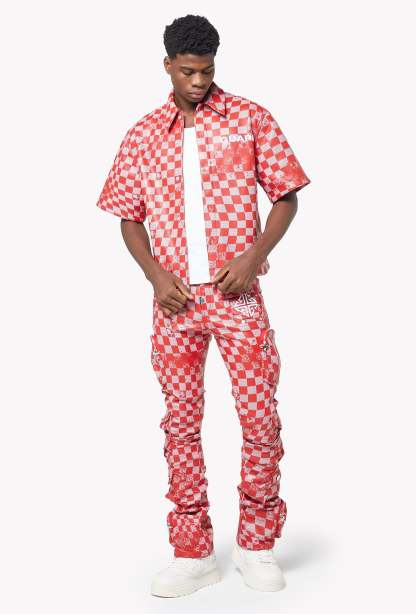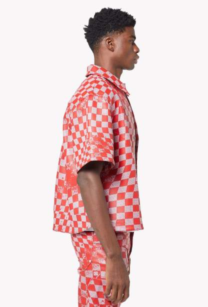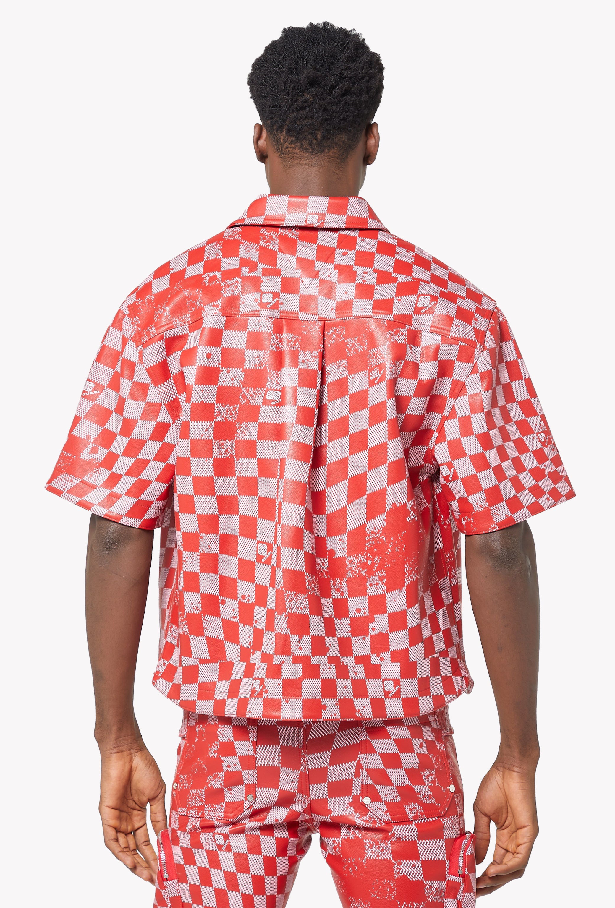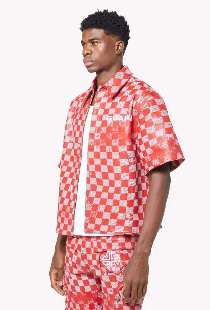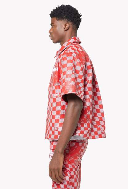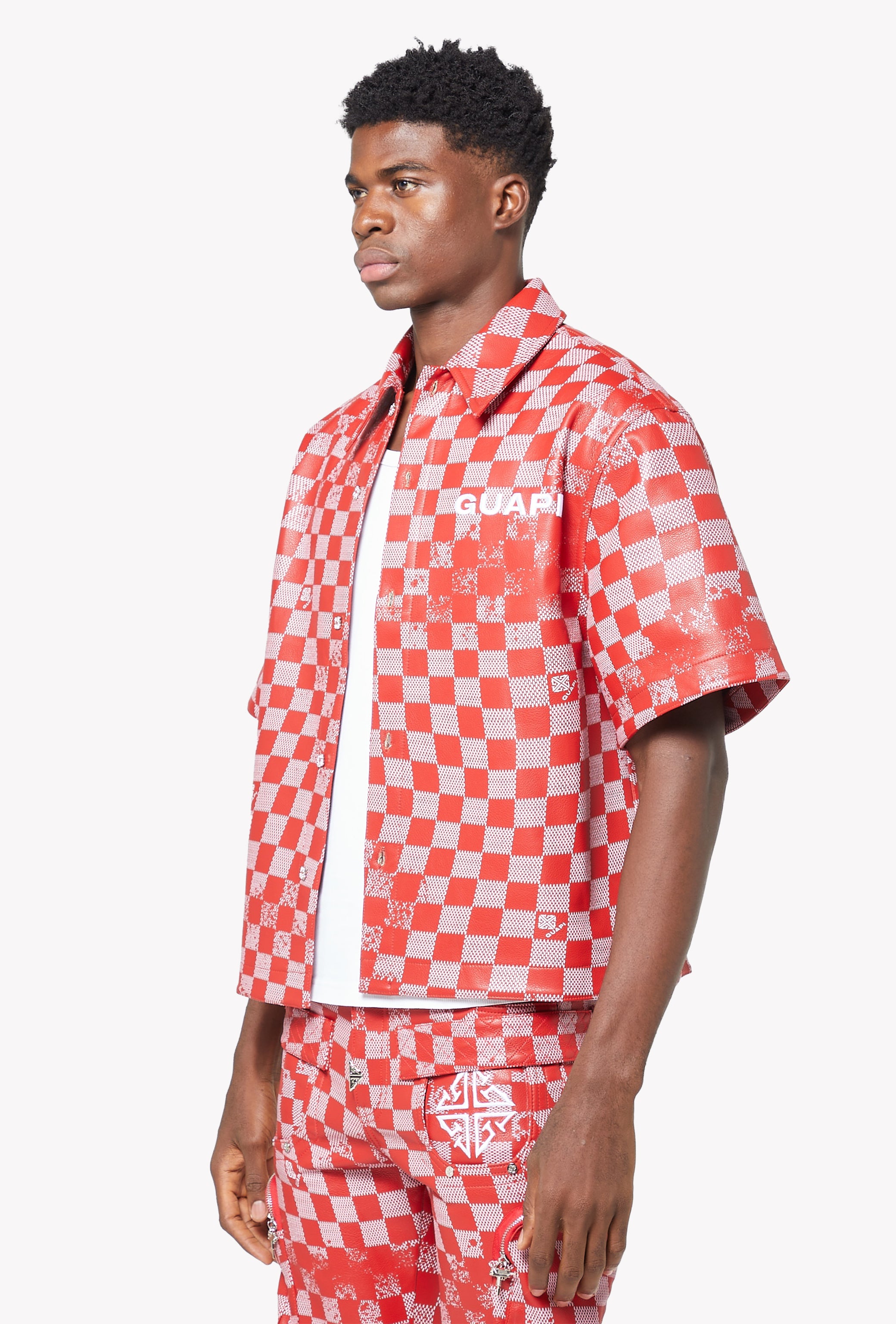 The Blood Red Checkerboard Leather Shirt is a bold, high-impact statement piece crafted in GUAPI’s signature reimagined leather. Designed to match the Blood Red Checkerboard Leather Pant, this shirt blends luxury craftsmanship with a loud, rebellious attitude.
