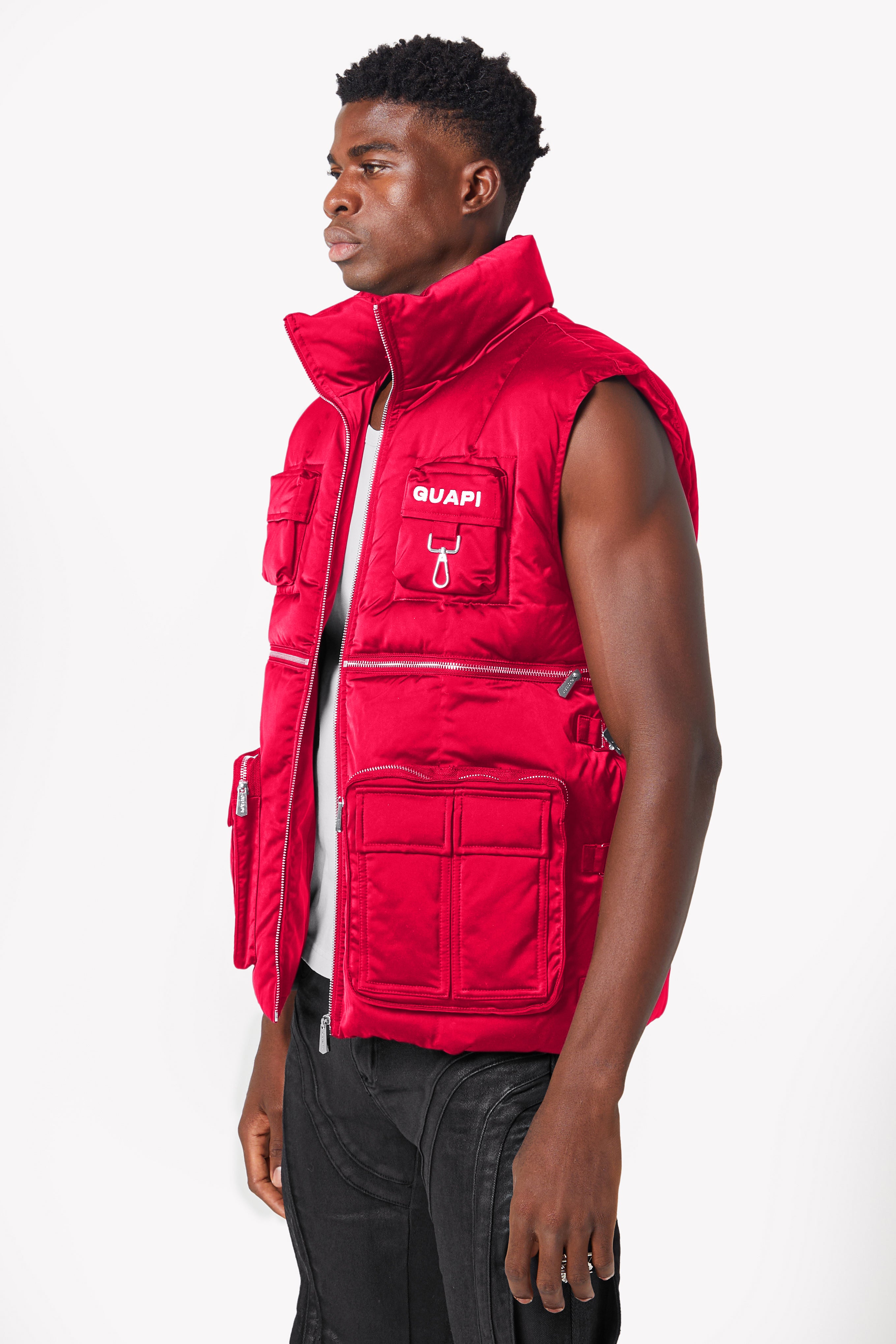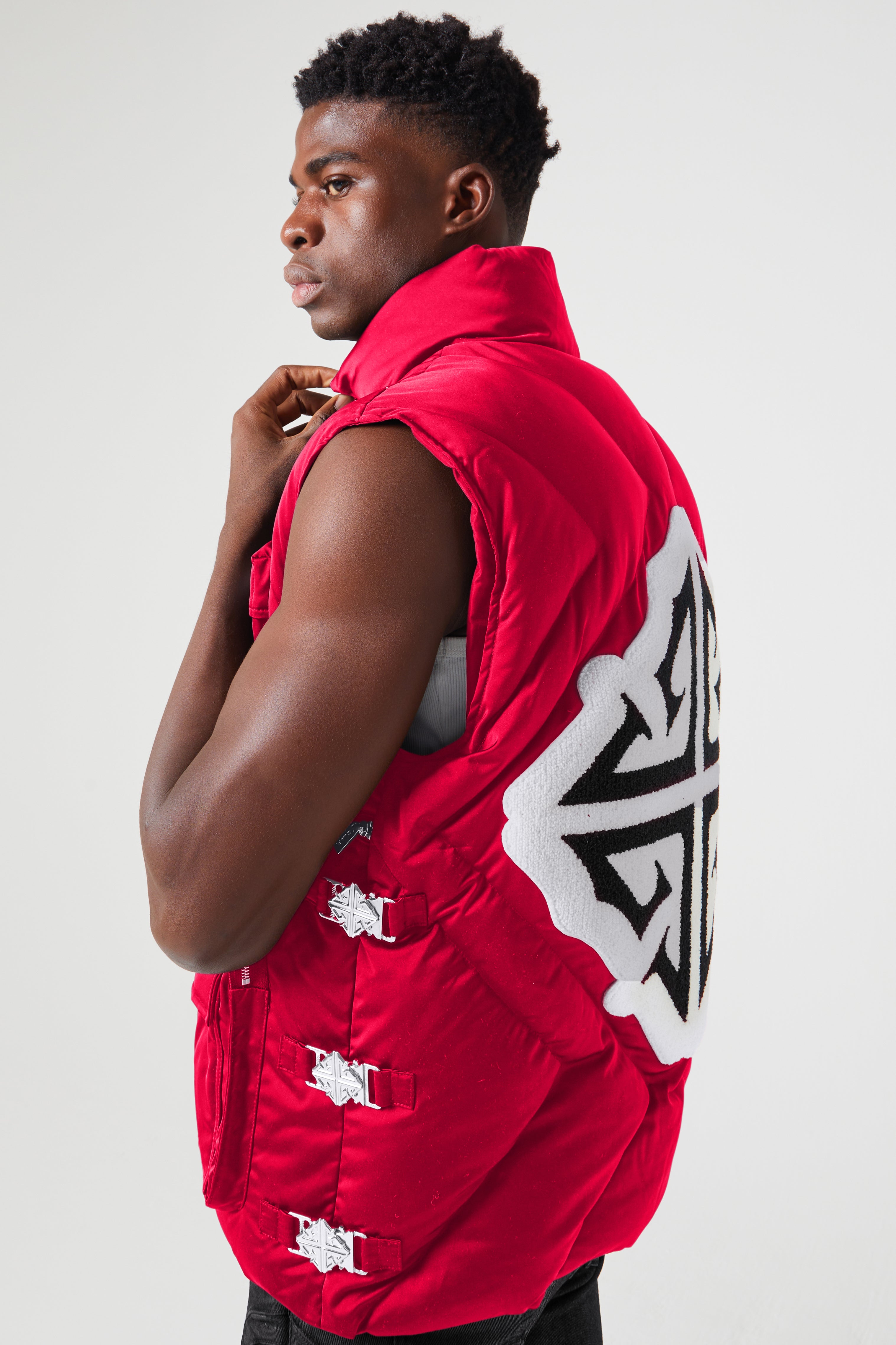Step out in the Blood Red Puffer Vest—a daring, luxurious piece for the fearless trendsetter.