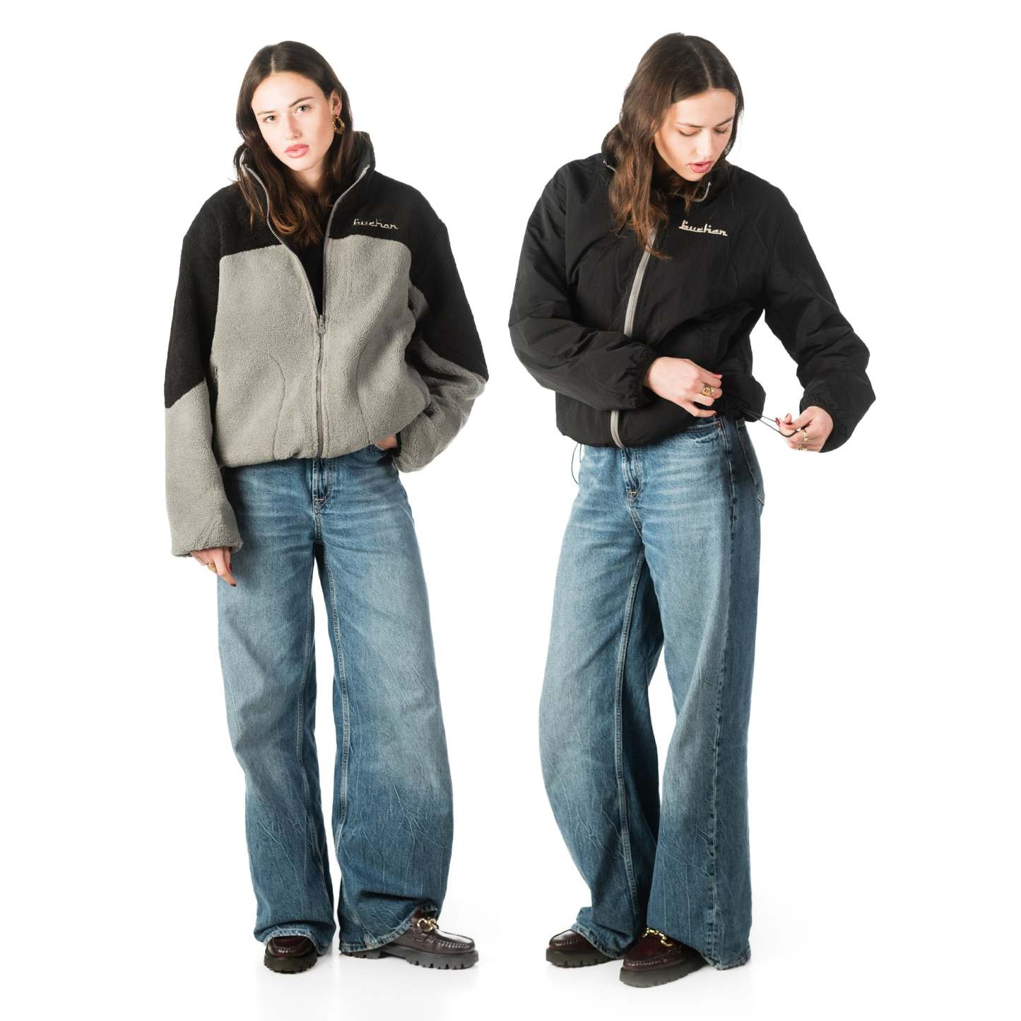 Female Model is 1.70m and wearing a size L, creating an oversize look