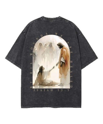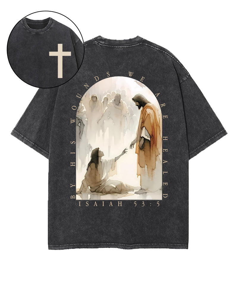 By His Wounds We Are Healed Double Sided Unisex Washed Christian T-shirt