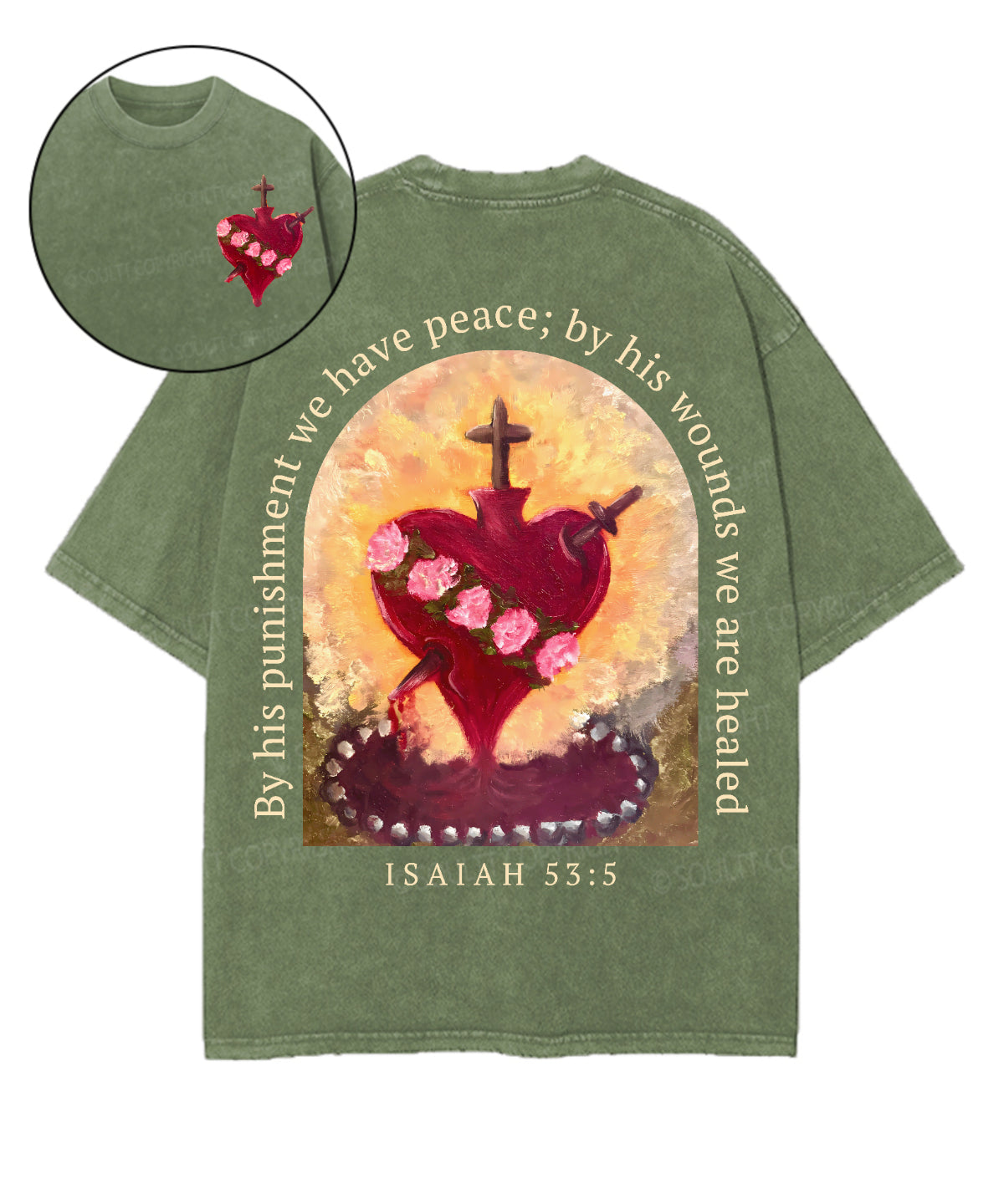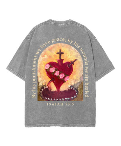 By His Wounds We Are Healed Double Sided Unisex Washed Christian T-shirt