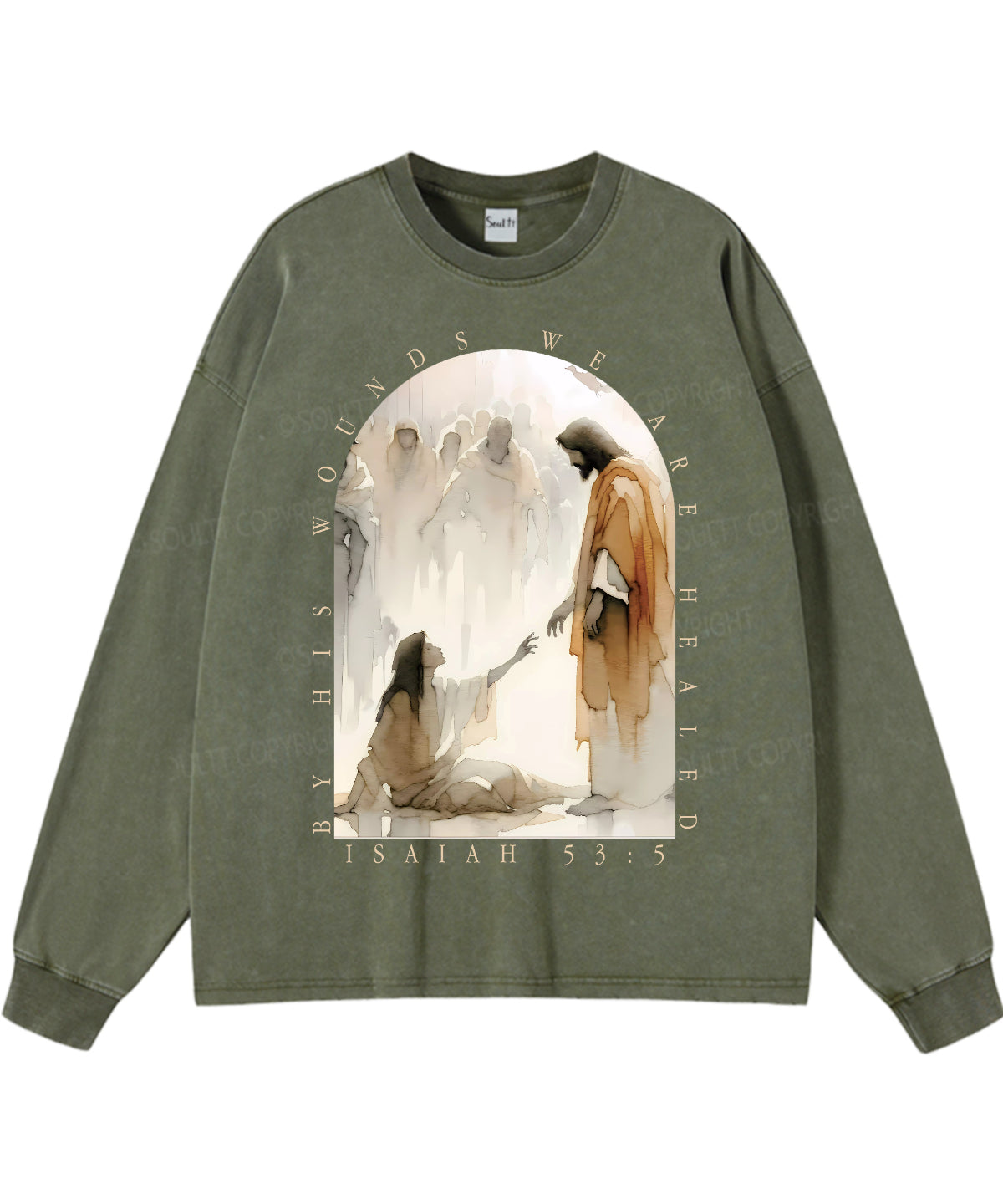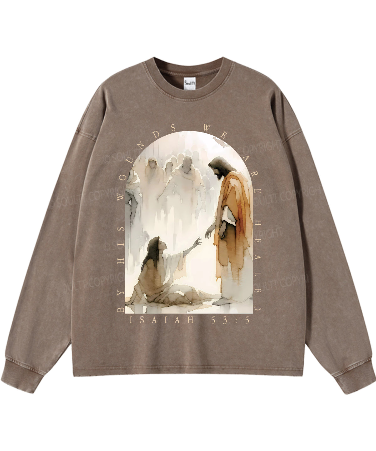 By His Wounds We Are Healed Unisex Washed Christian Long-sleeve T-shirt