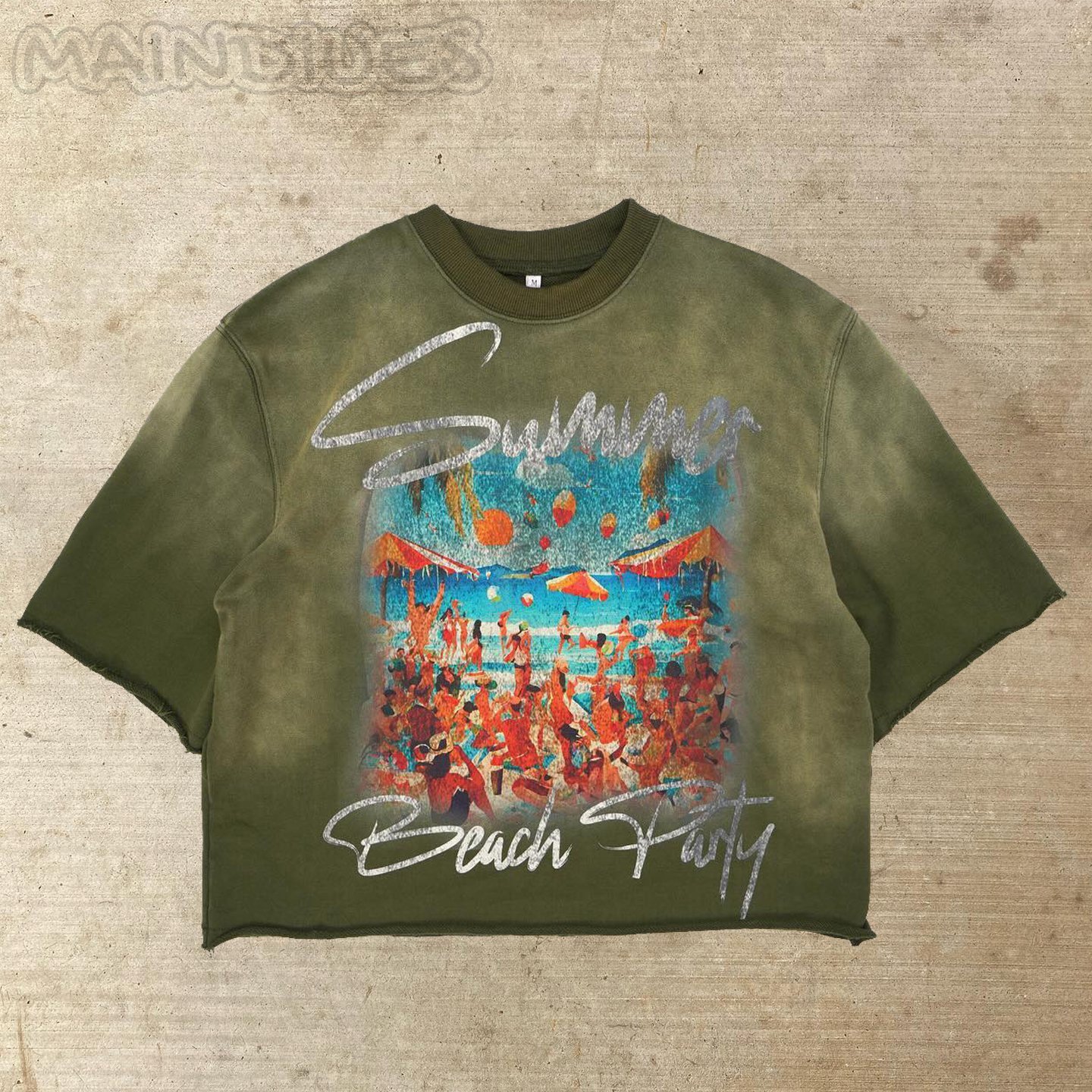 Casual retro personalized round neck three-quarter sleeve T-shirt