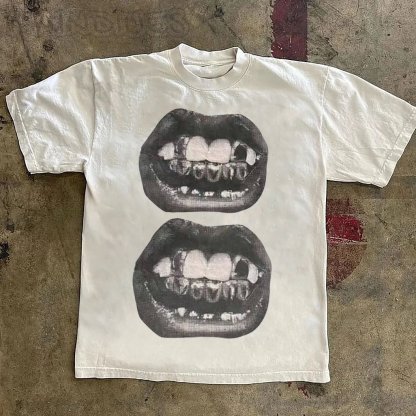 Casual Two Mouths Print Short Sleeve T-Shirt