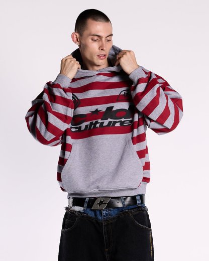 Striped fabric in red & grey color.