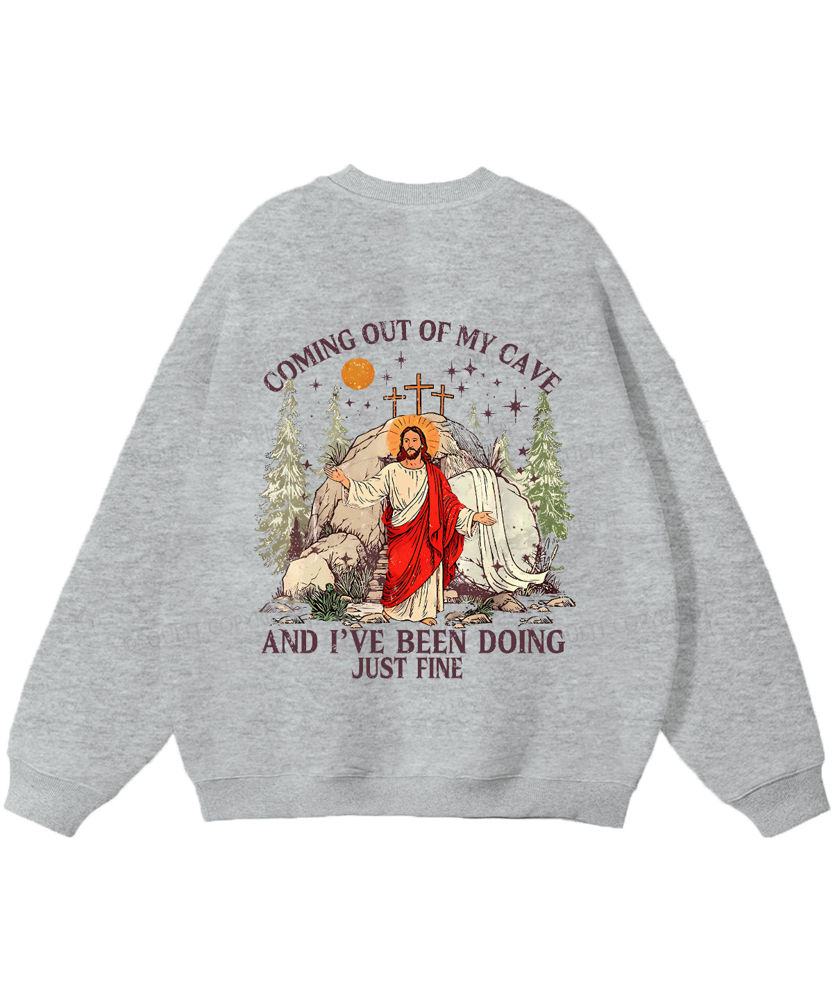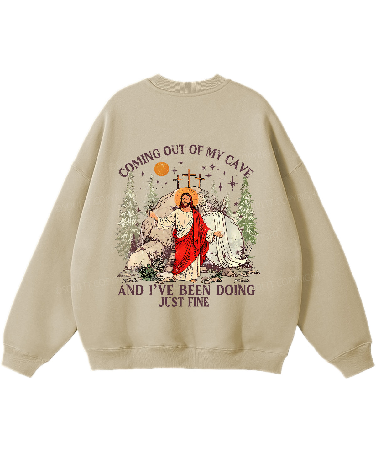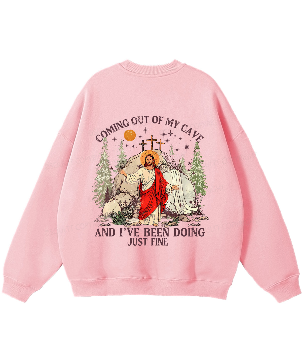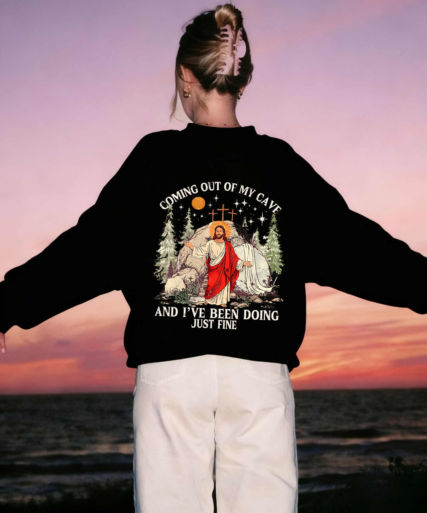 Coming Out Of My Cave And I've Been Doing Just Fine Double Sided Unisex Christian Sweatshirt