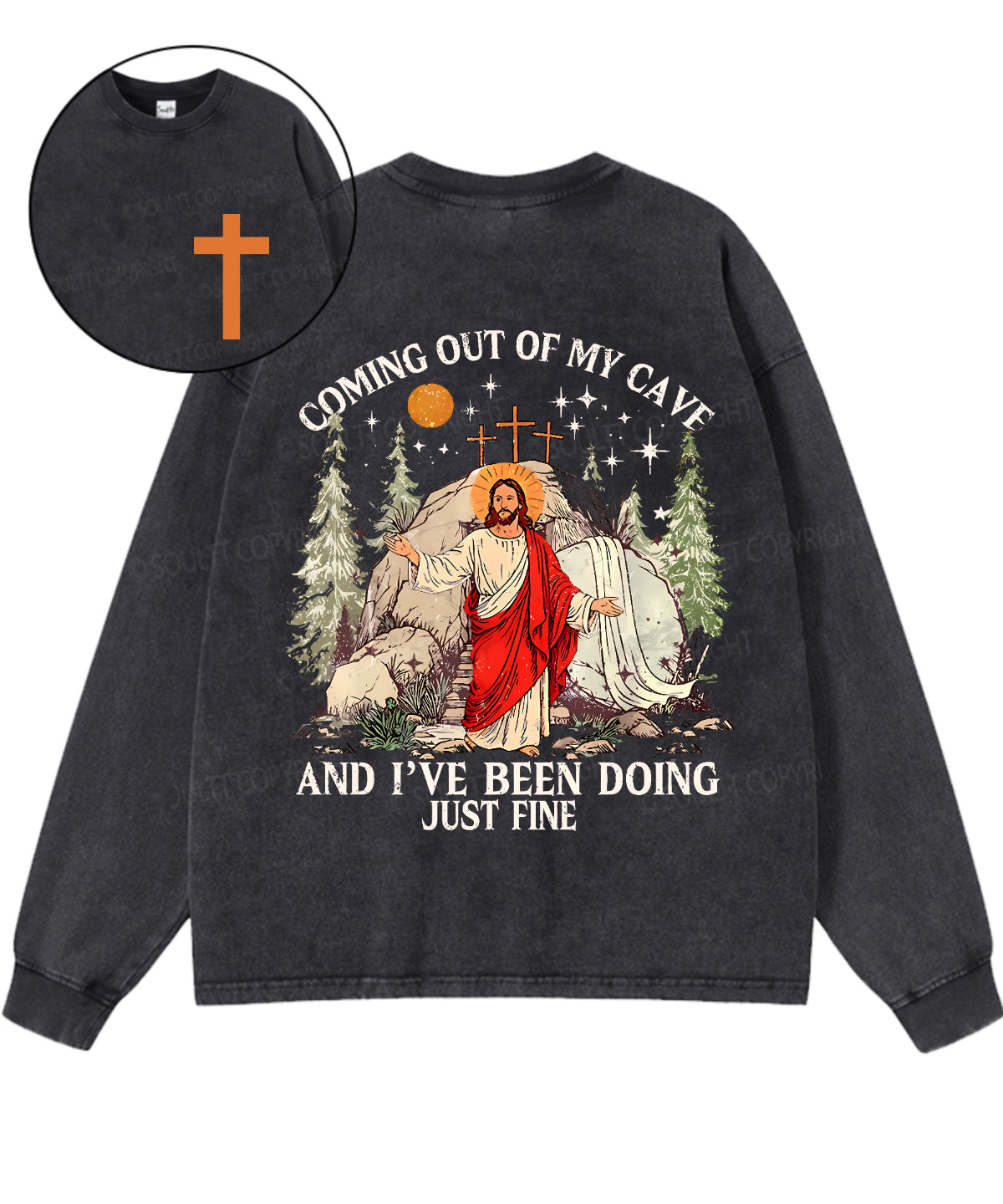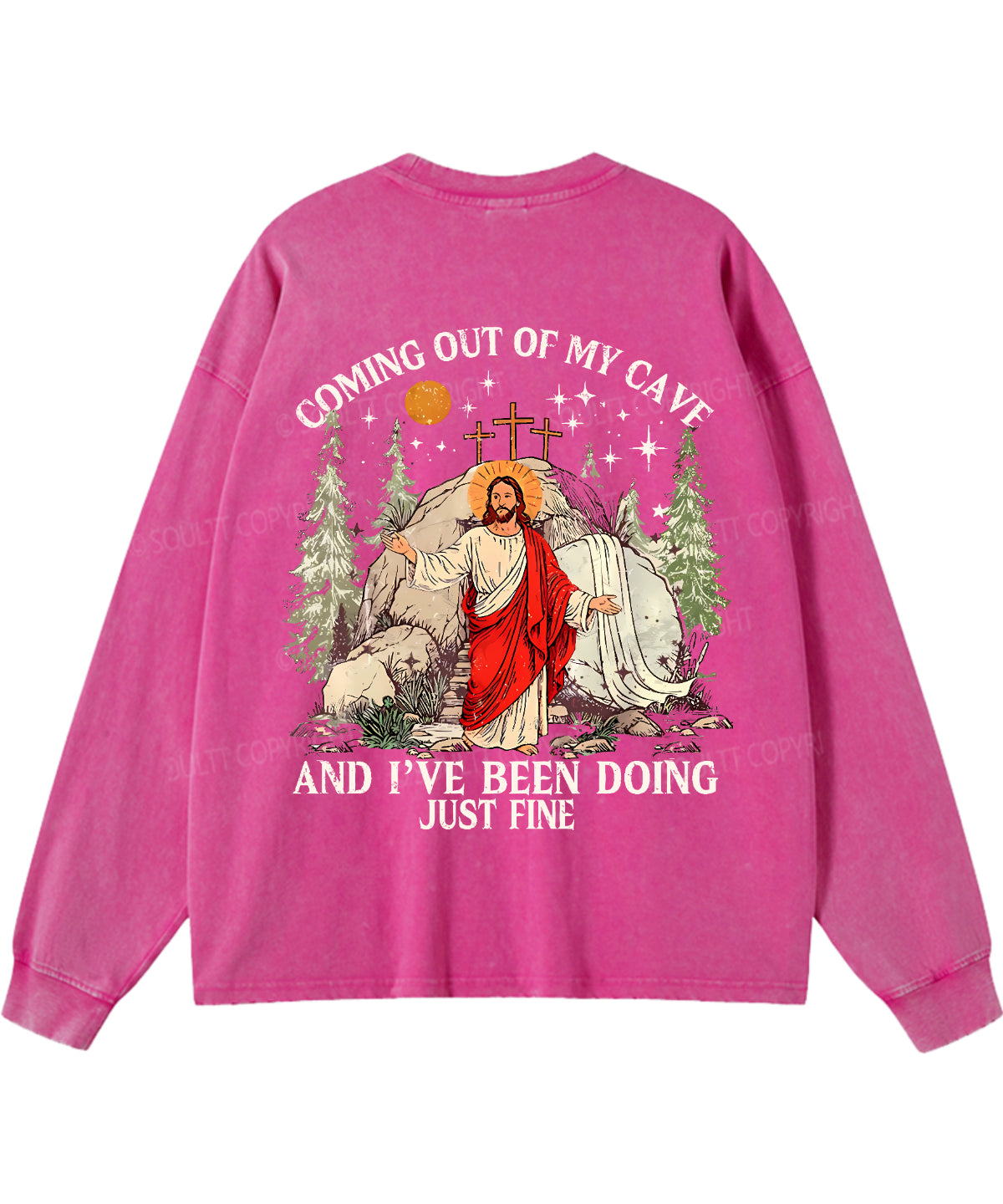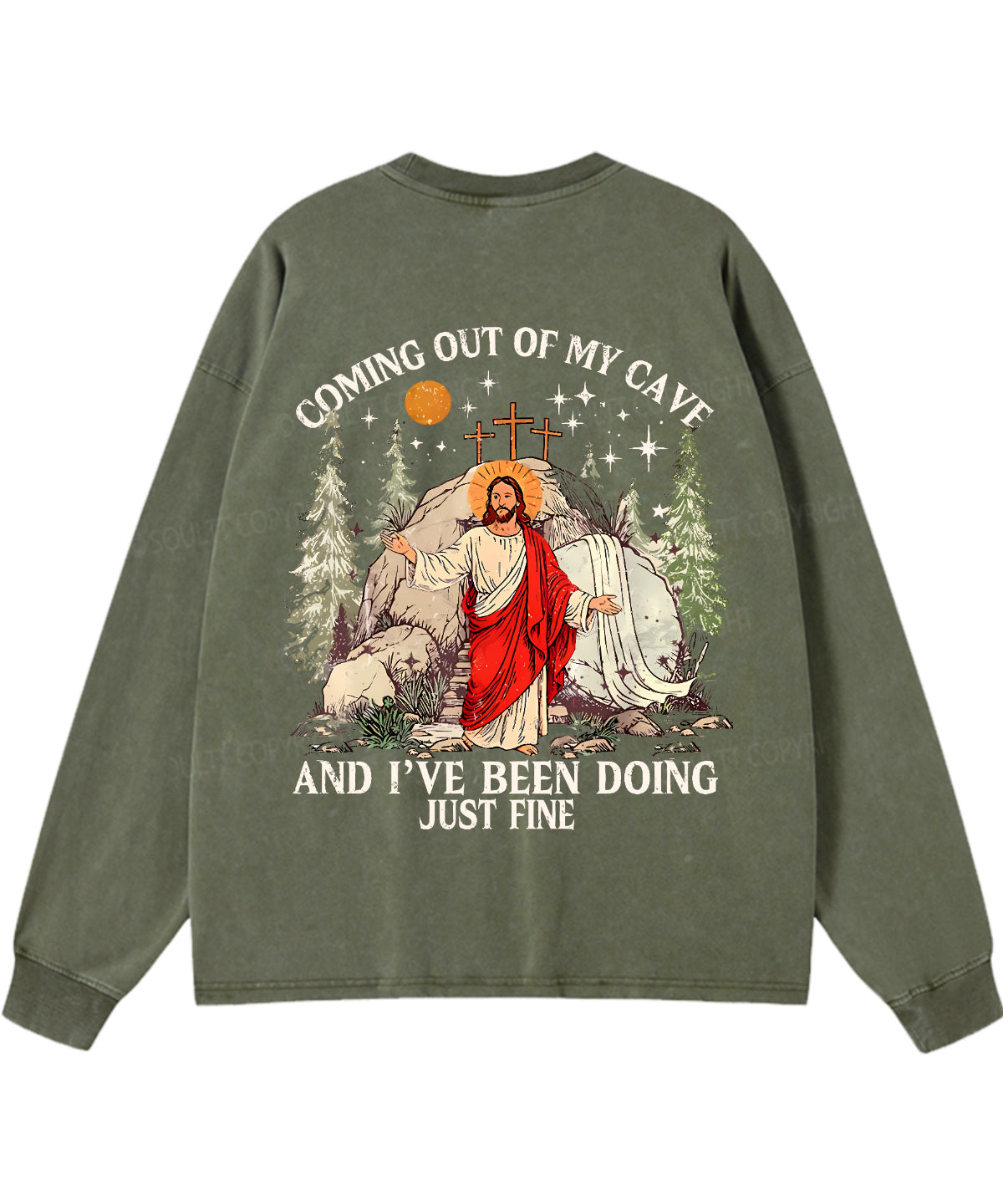 Coming Out Of My Cave And I've Been Doing Just Fine Double Sided Unisex Washed Christian Long-sleeve T-shirt