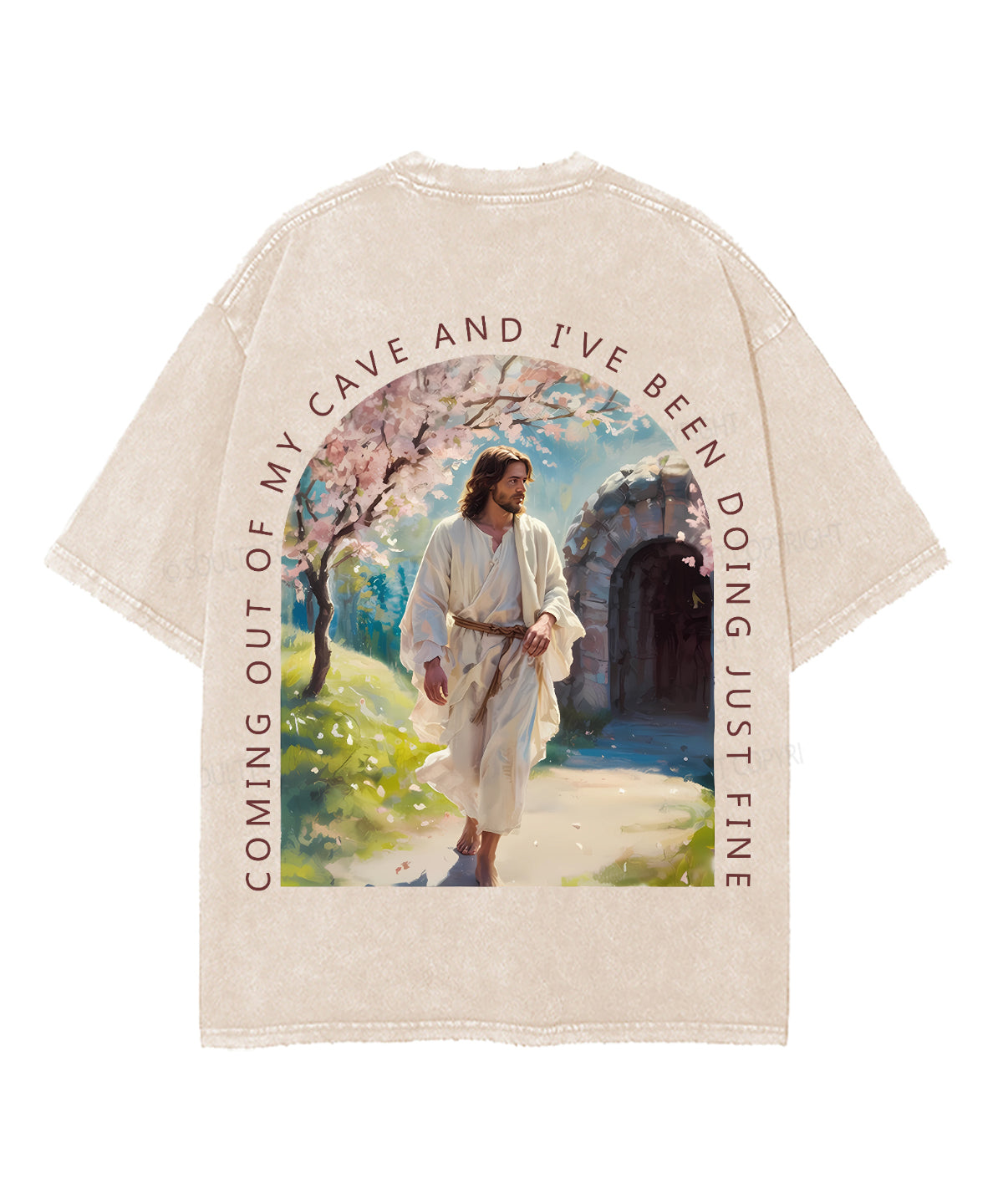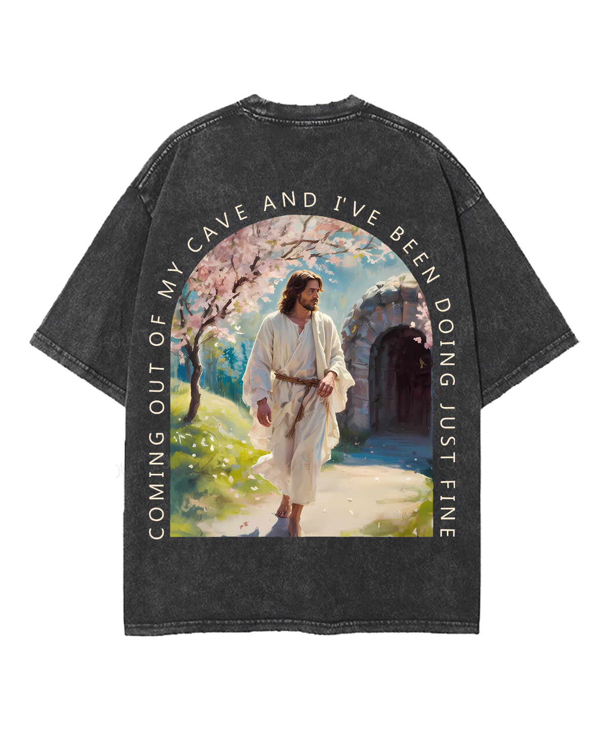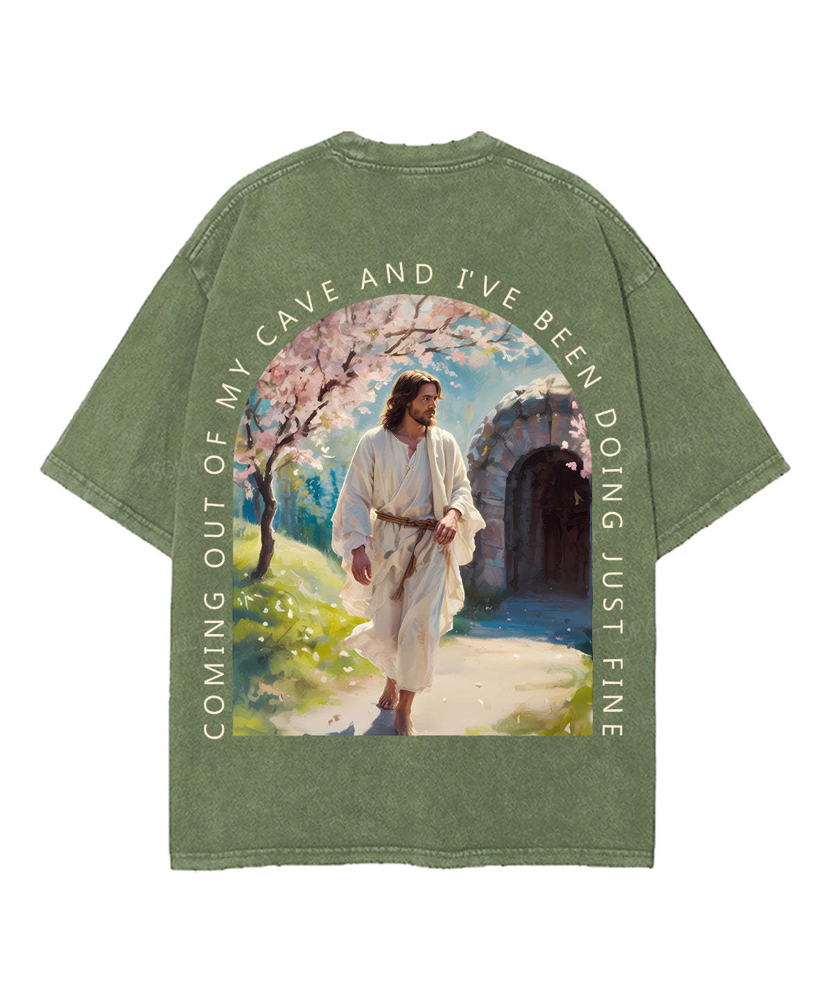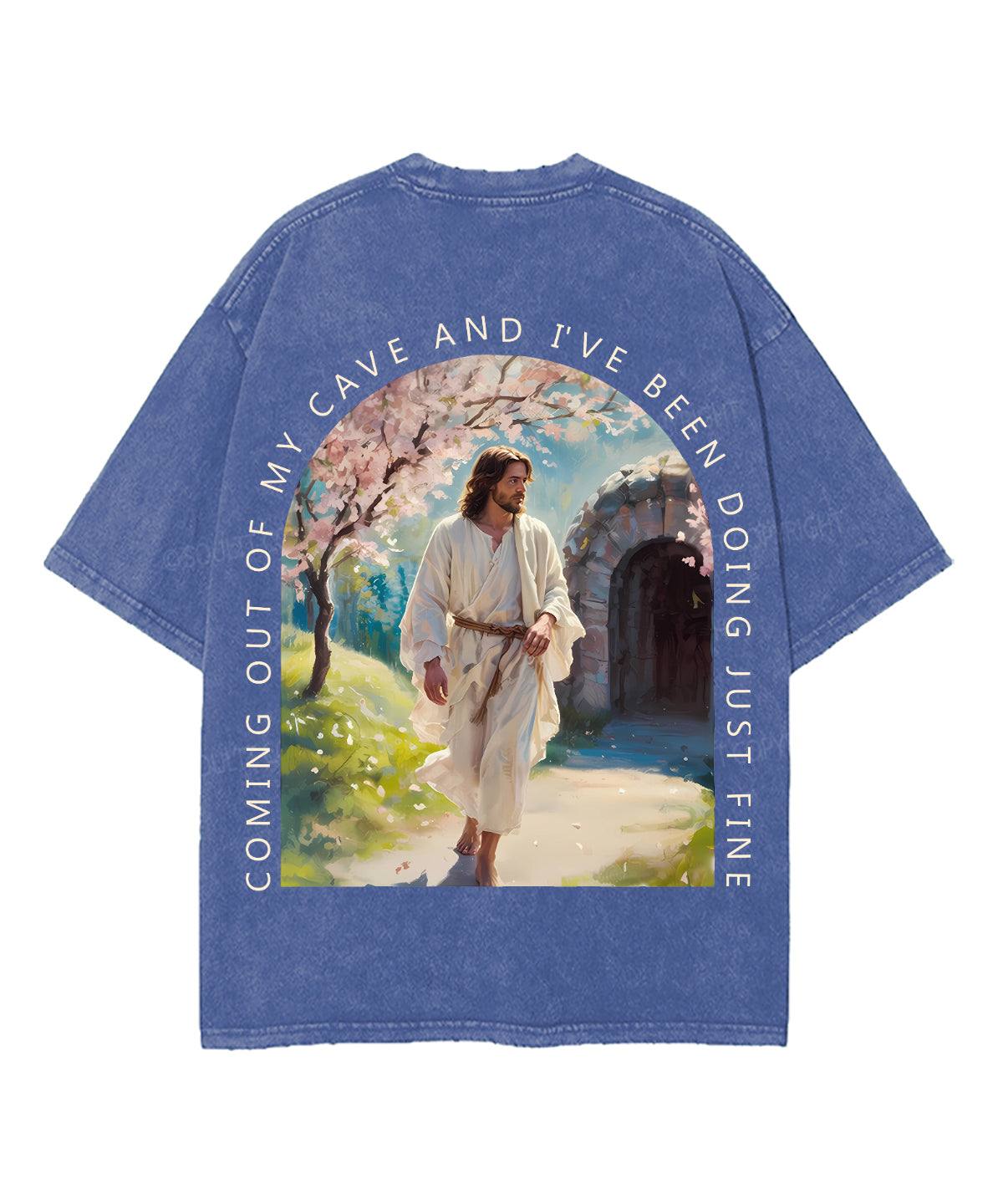 Coming Out Of My Cave And I've Been Doing Just Fine Double Sided Unisex Washed Christian T-shirt