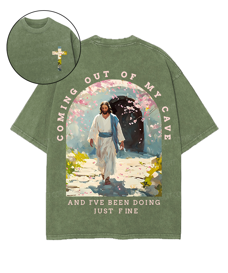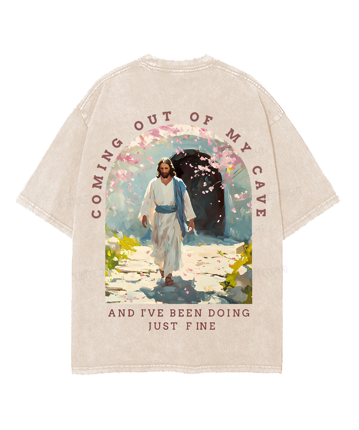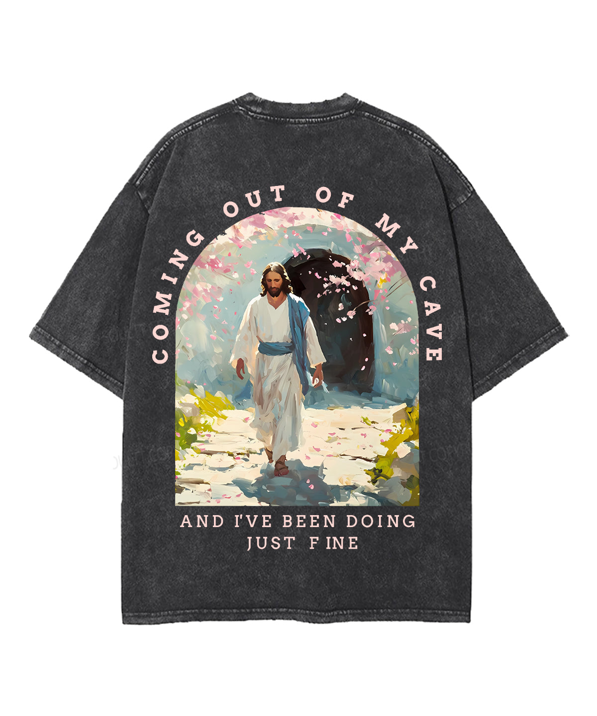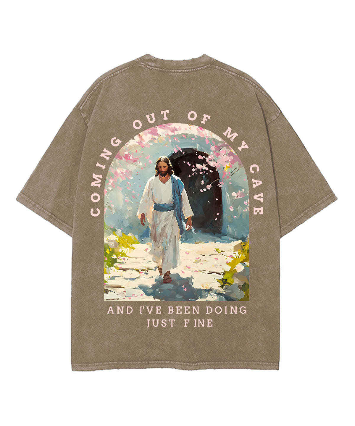 Coming Out Of My Cave And I've Been Doing Just Fine Double Sided Unisex Washed Christian T-shirt