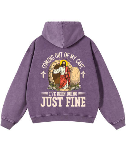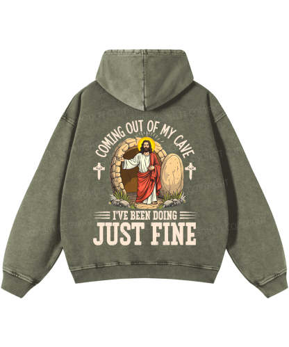 Coming Out Of My Cave And I've Been Doing Just Fine Double Sided Washed Christian Hoodie