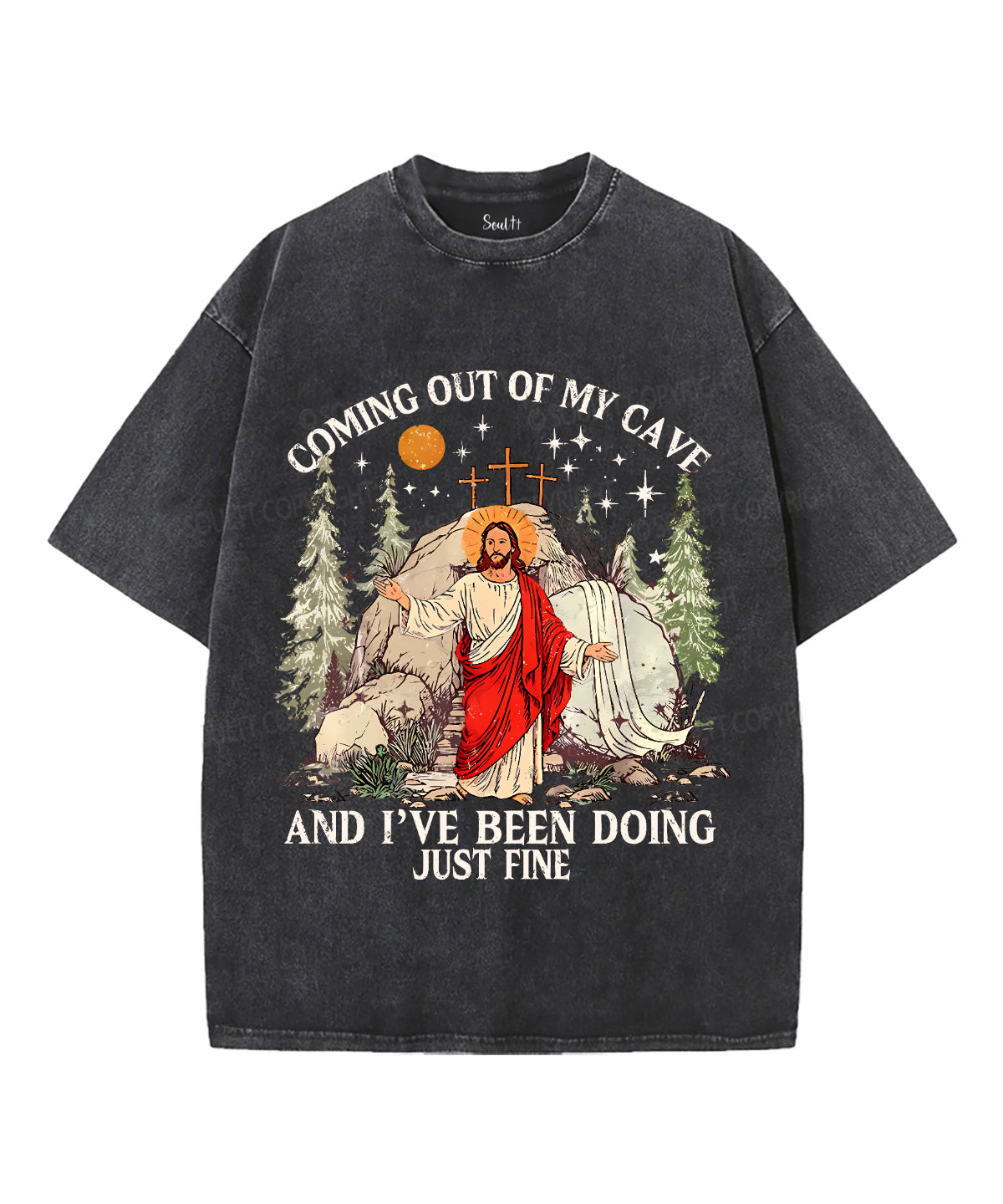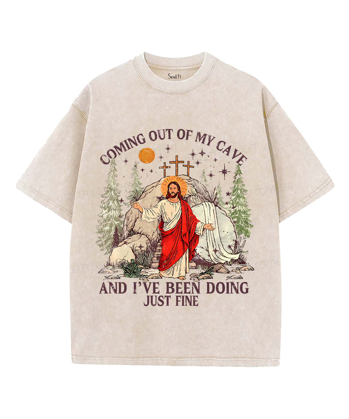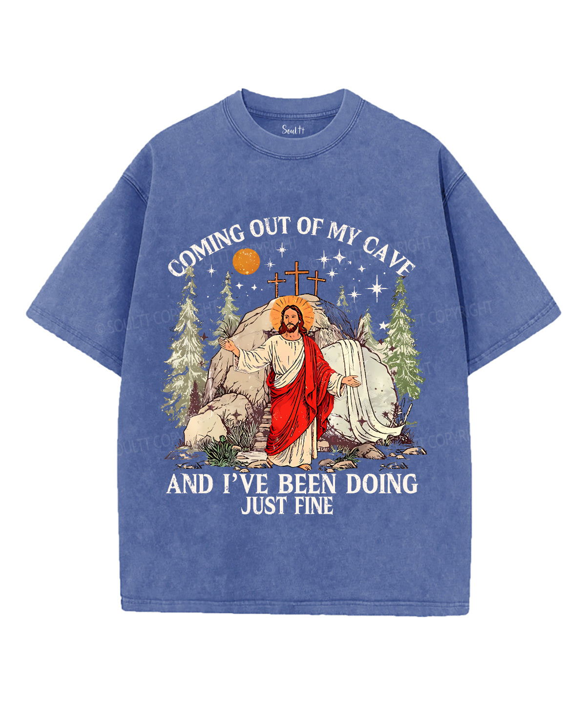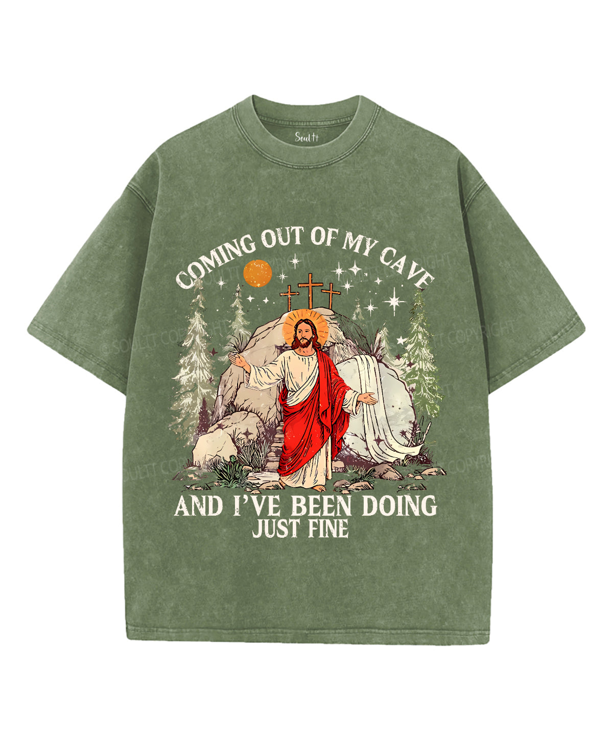 Coming Out Of My Cave And I've Been Doing Just Fine Unisex Washed Christian T-shirt