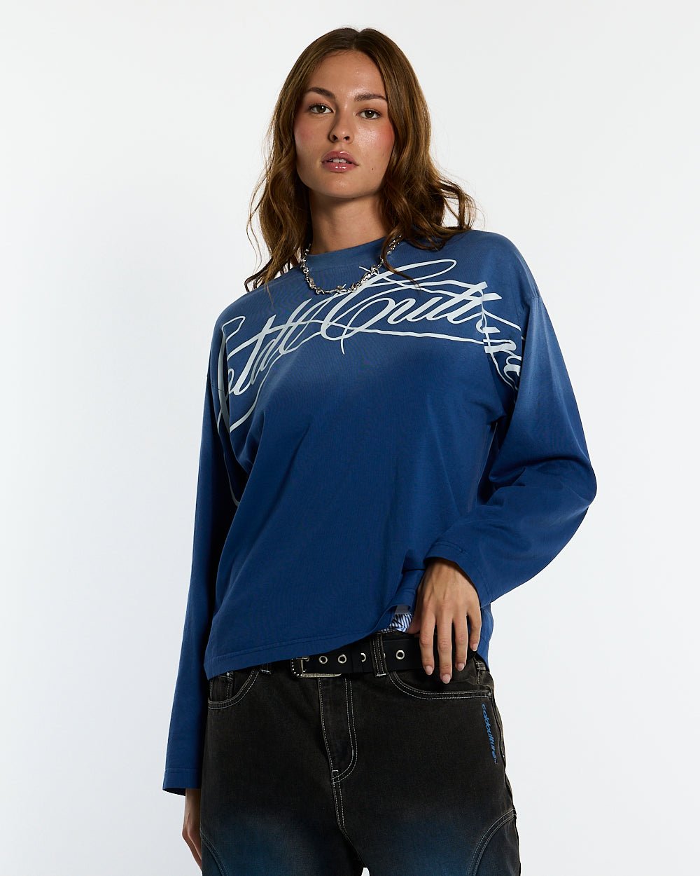 CROSSED SCRIPT LONGSLEEVE VIBRANT BLUE