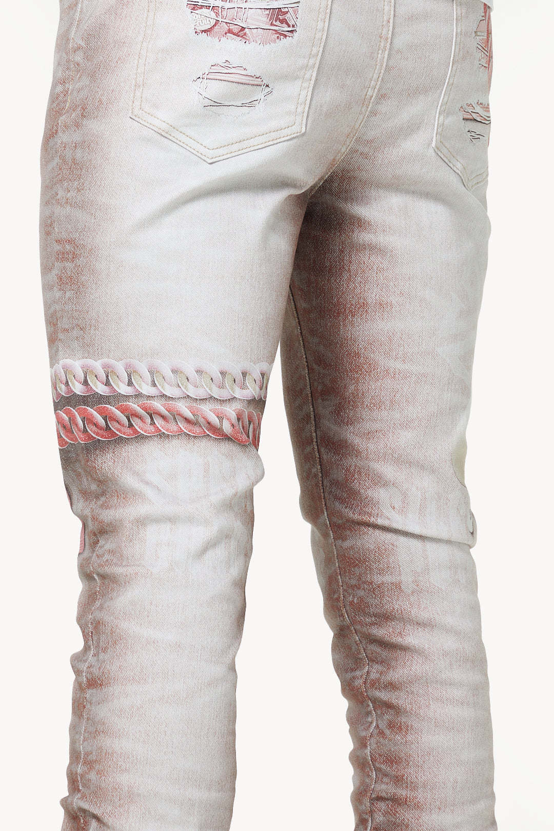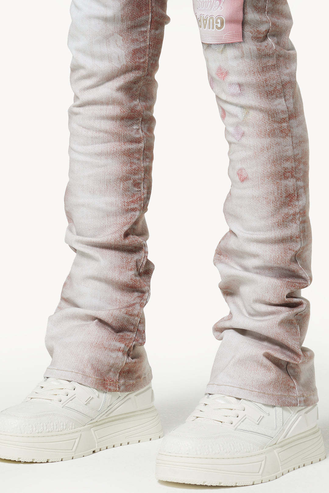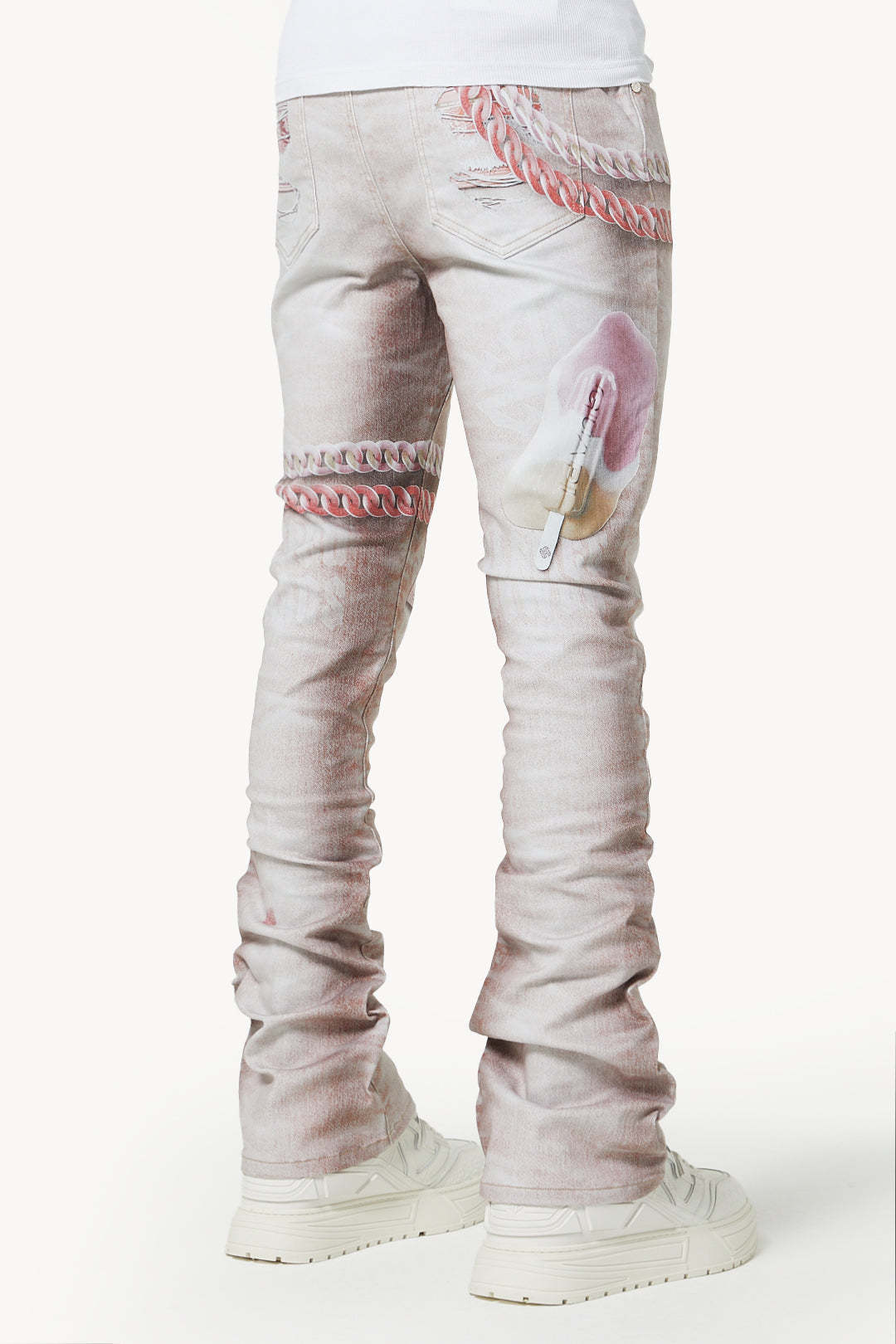 The Candy Riot Denim pushes past boundaries with surreal candy-inspired graphics stitched into our signature stacked silhouette. Every pair is designed as a wearable art piece – provocative, playful, and impossible to ignore.