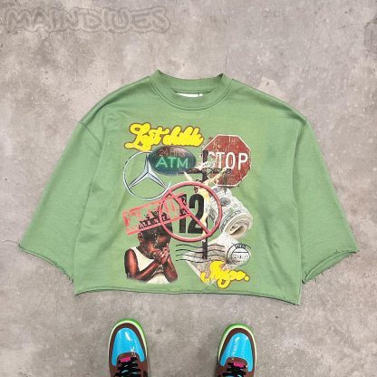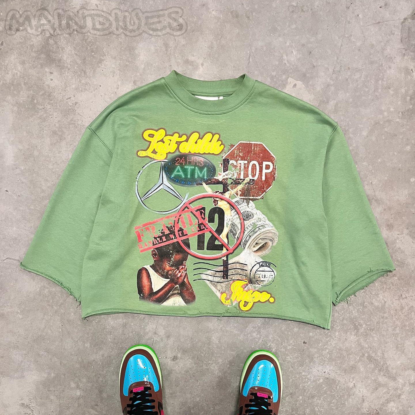 Fashionable personalized printed irregular loose T-shirt