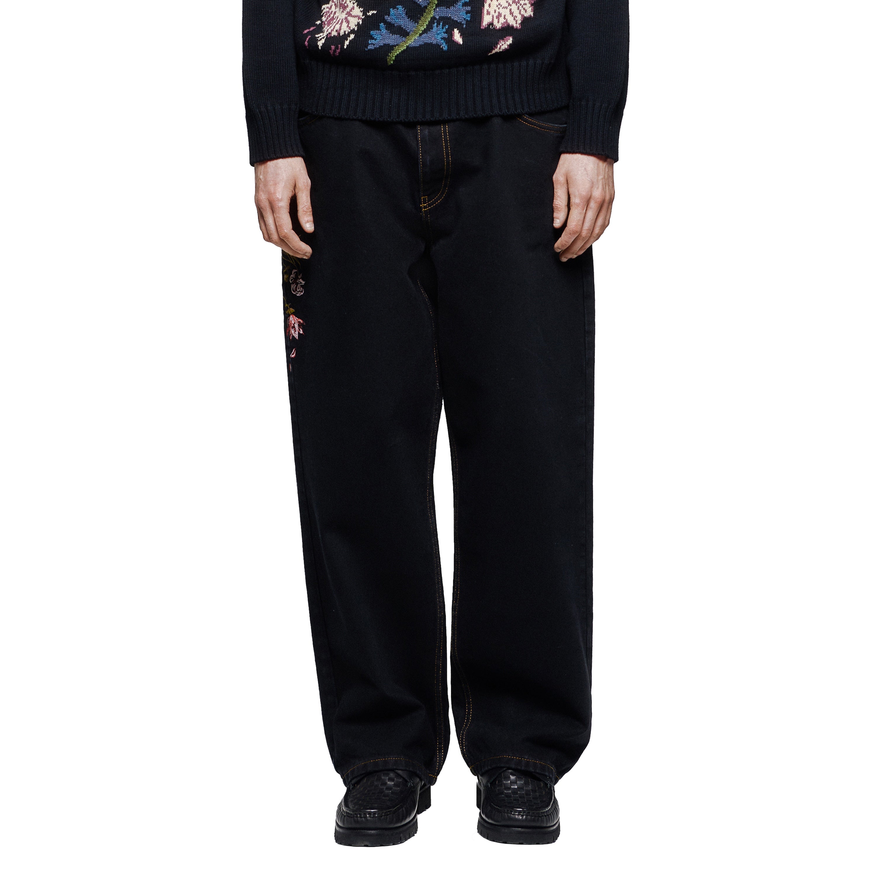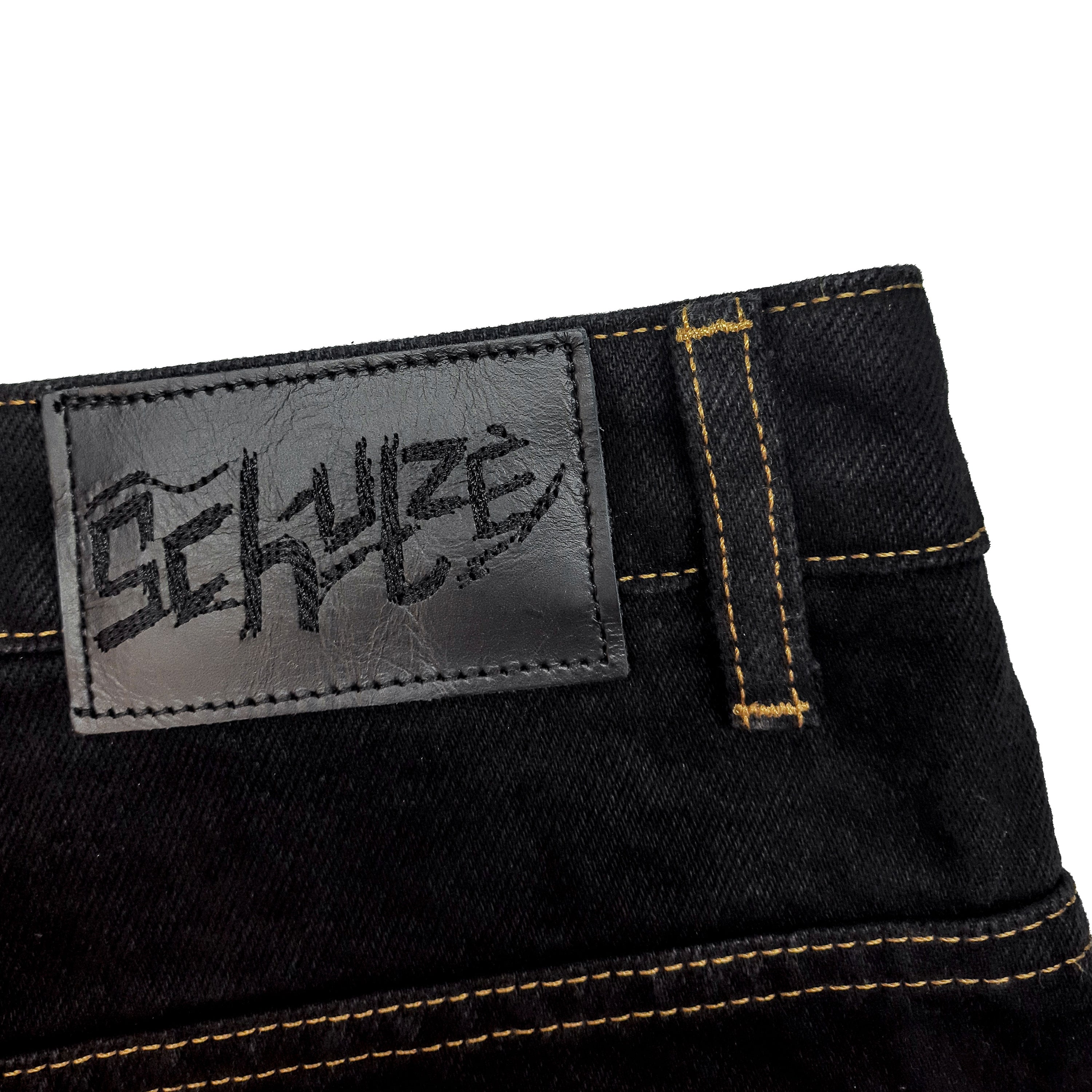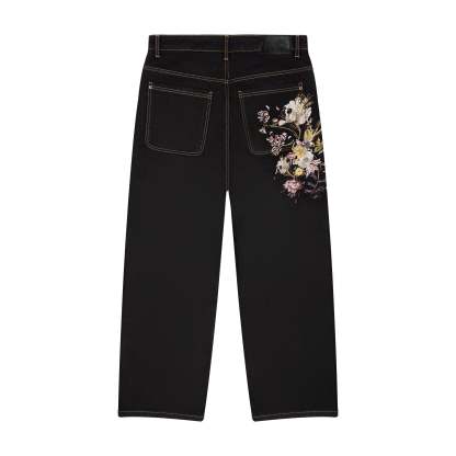 14,5oz denim / 100% cotton / embroidery on front and back / embroidered leather patch / custom button / baggy fit / fits true to size
