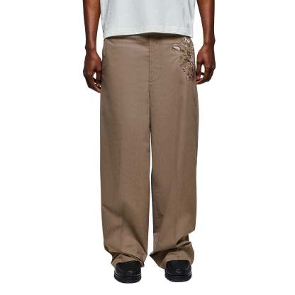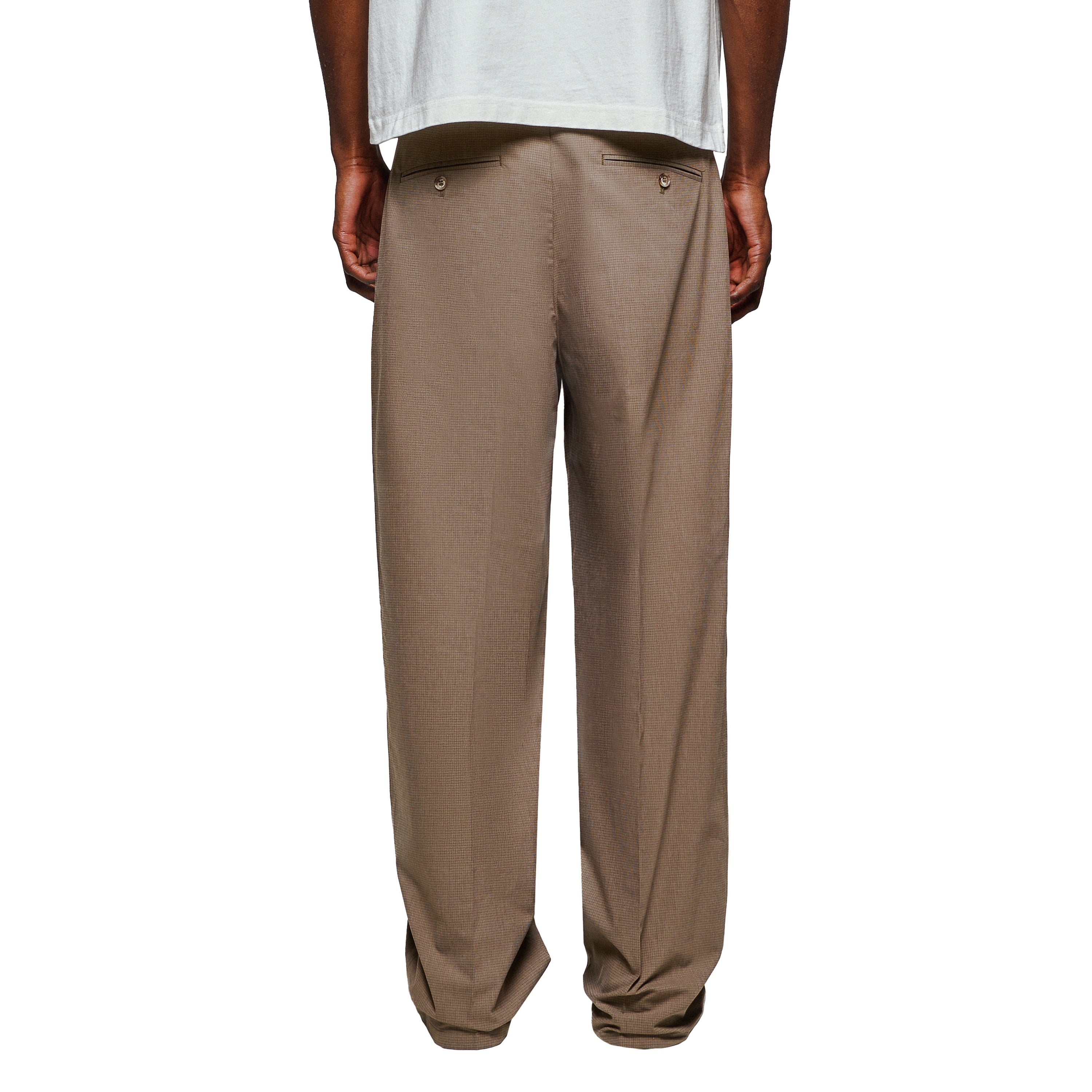 190 gsm plaid patterned gabardine / 73% cotton 25% polyester 2% lycra / embroidery on front / custom buttons / straight fit / fits true to size