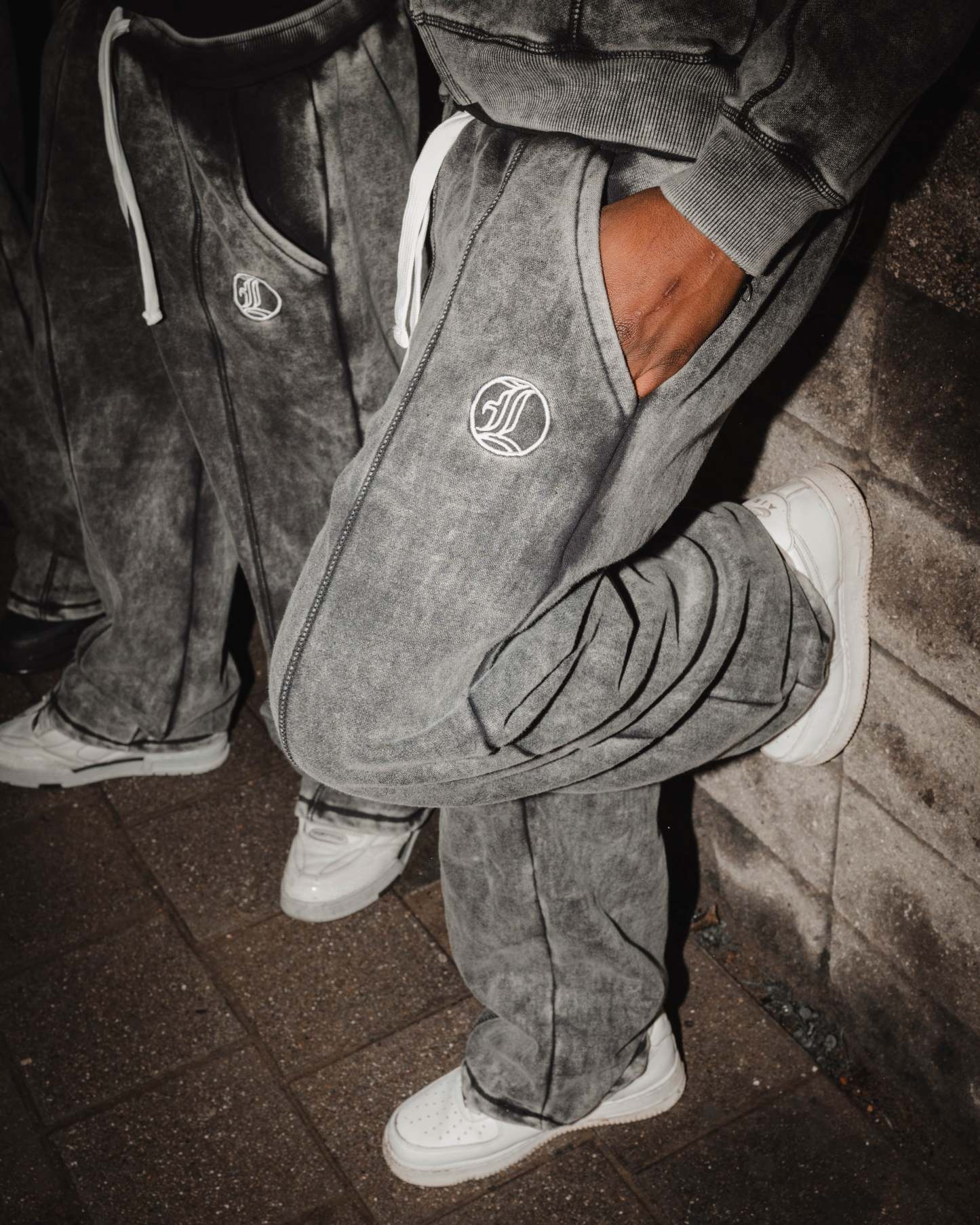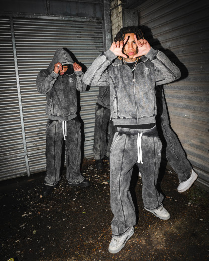 Comfortable jogging pants with heavy washing.