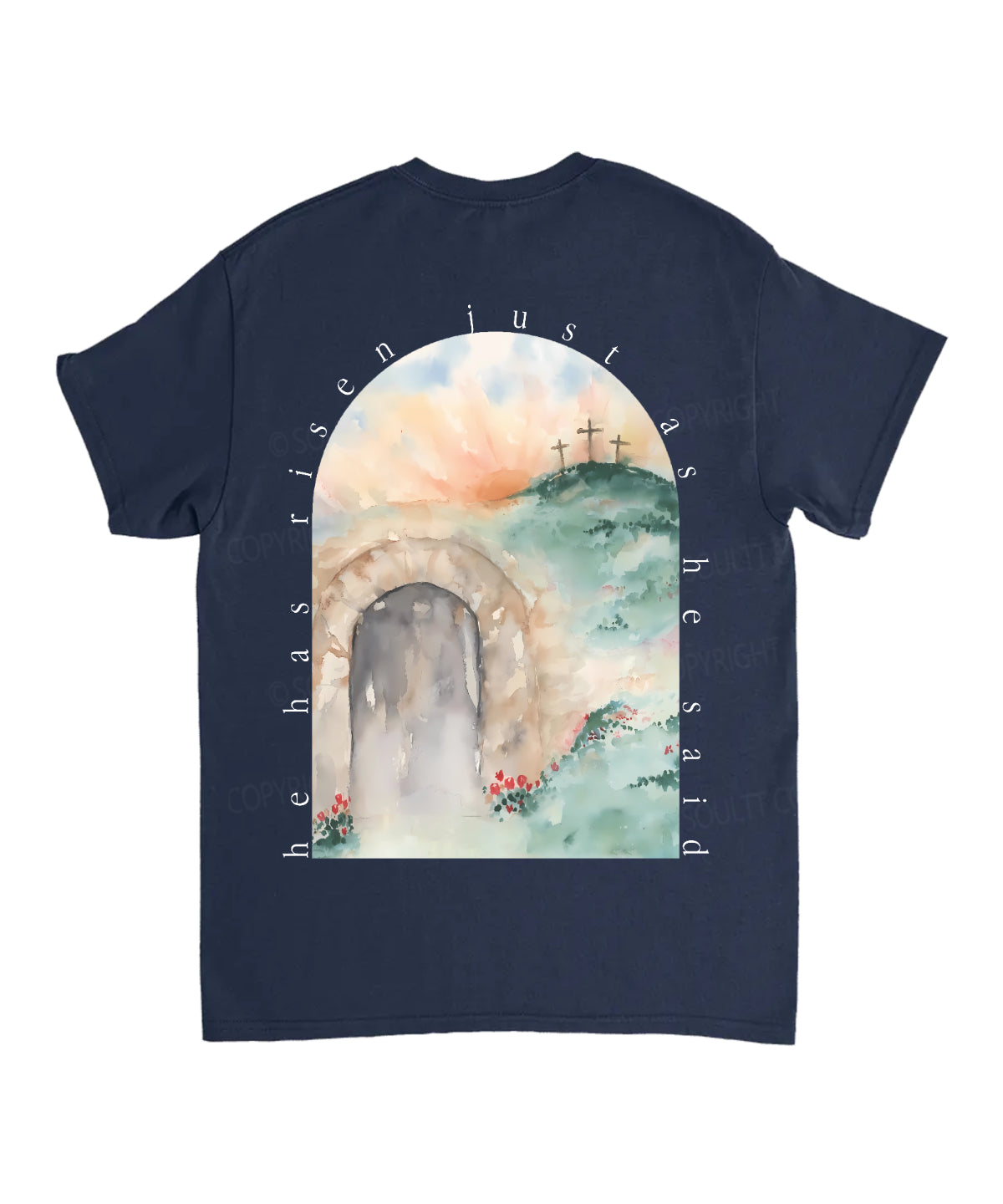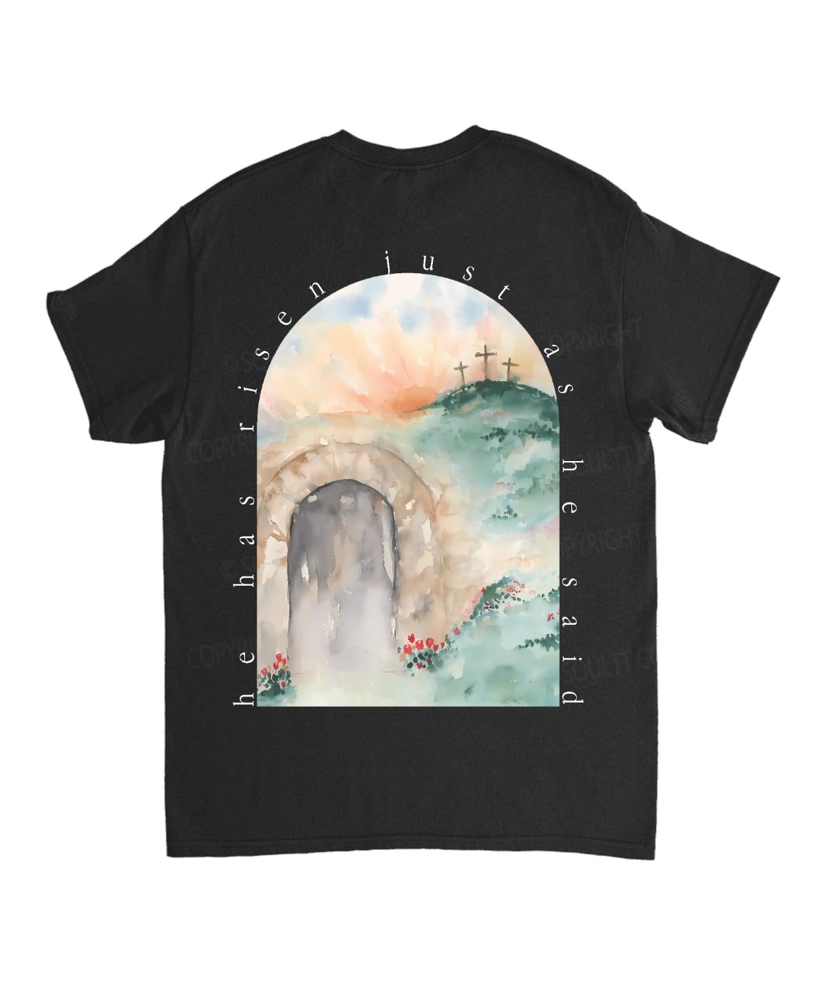 He Has Risen Double Sided Unisex Cotton Christian T-Shirt