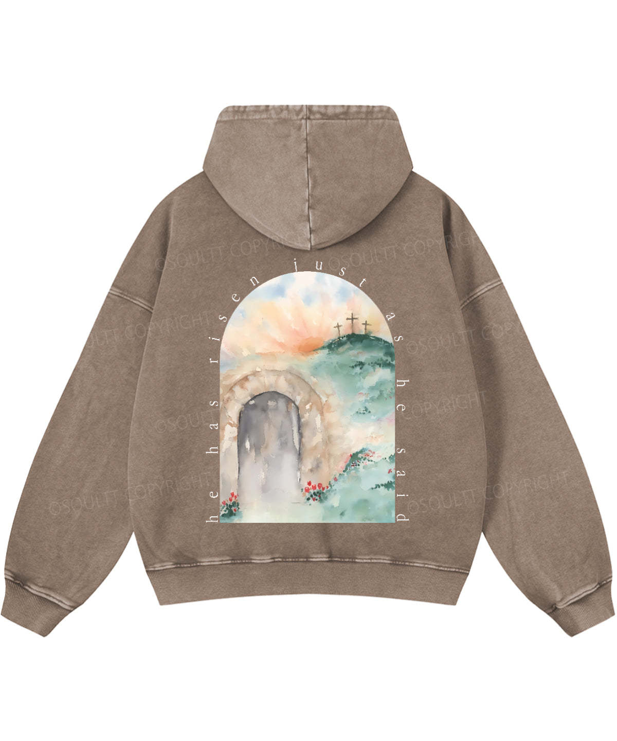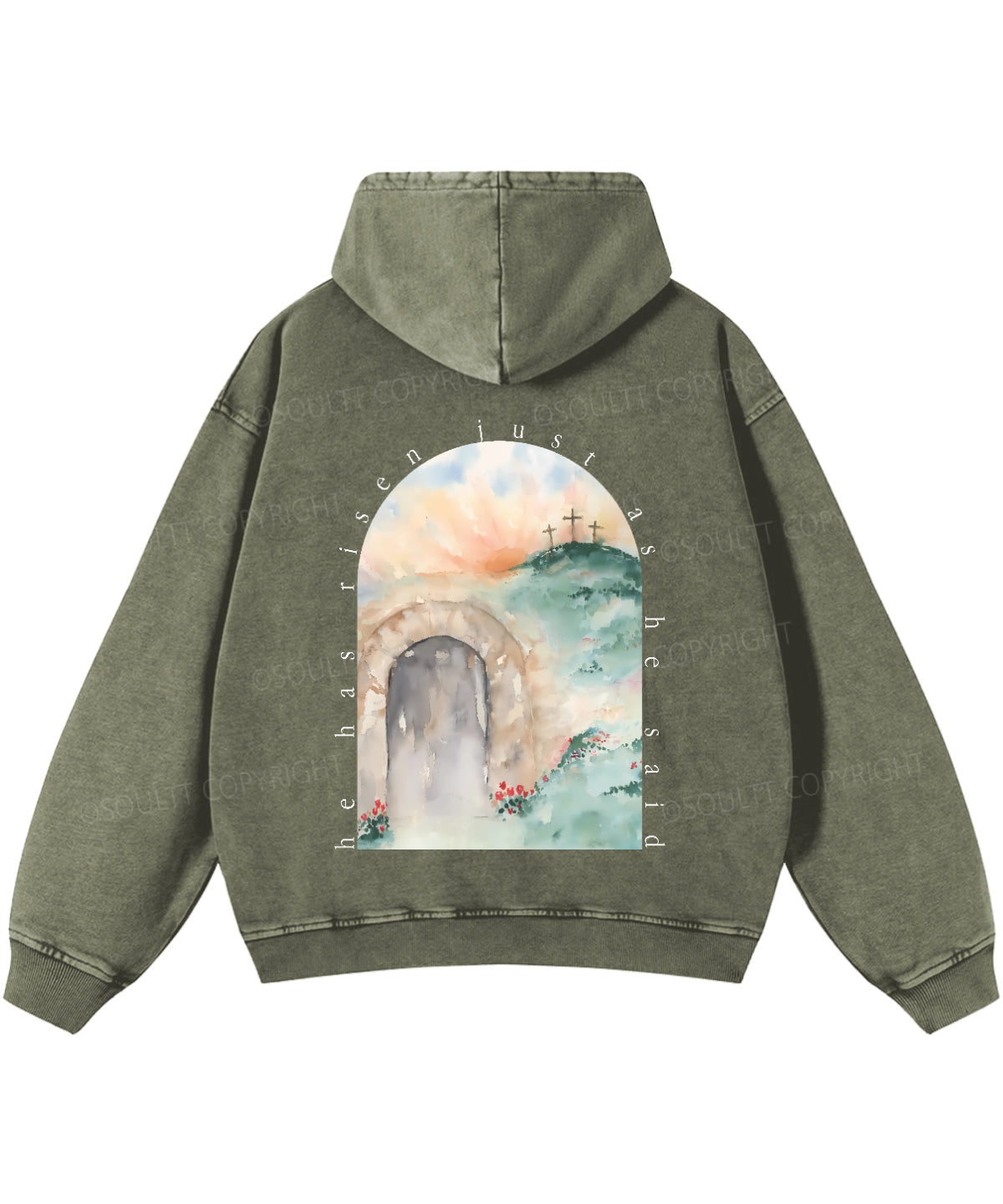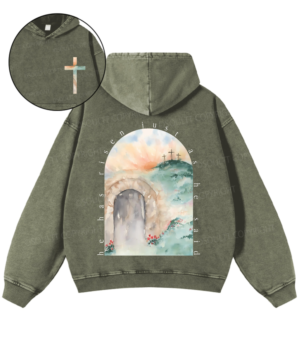 He Has Risen Double Sided Washed Christian Hoodie