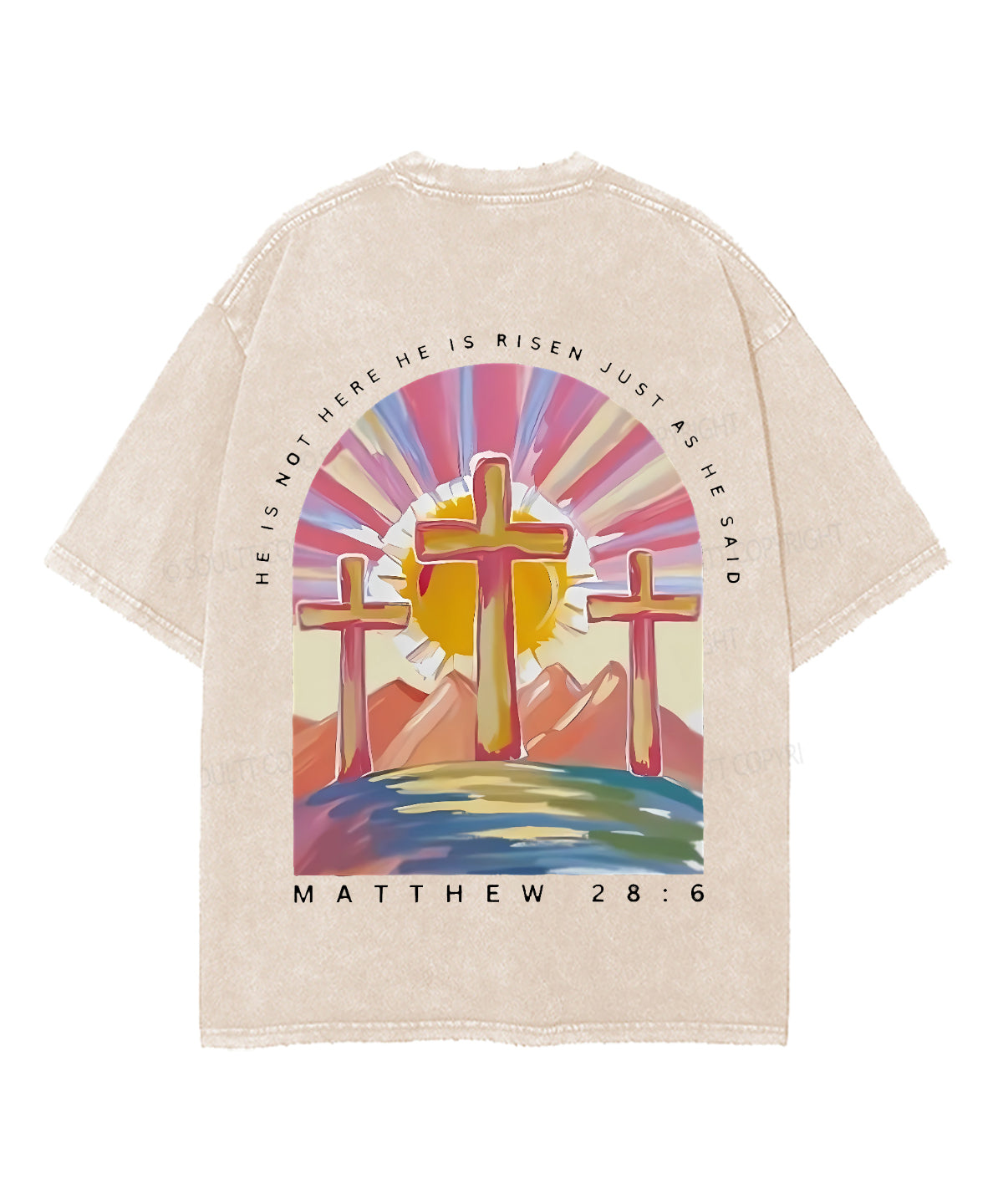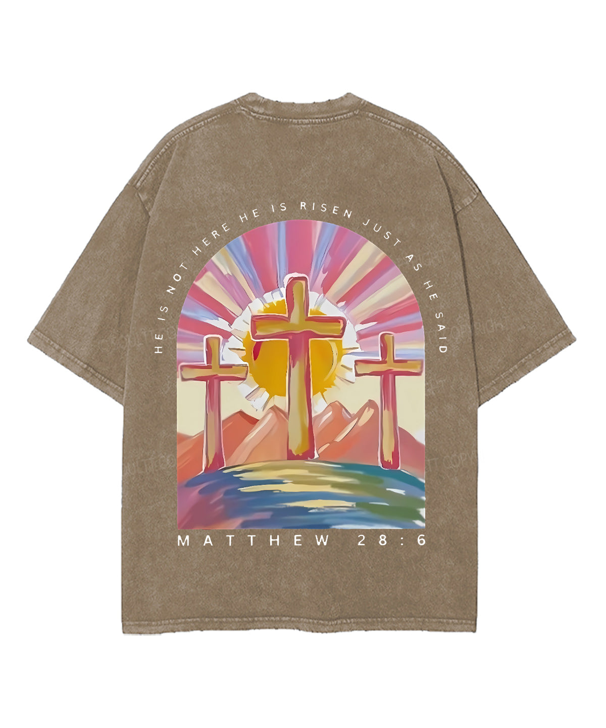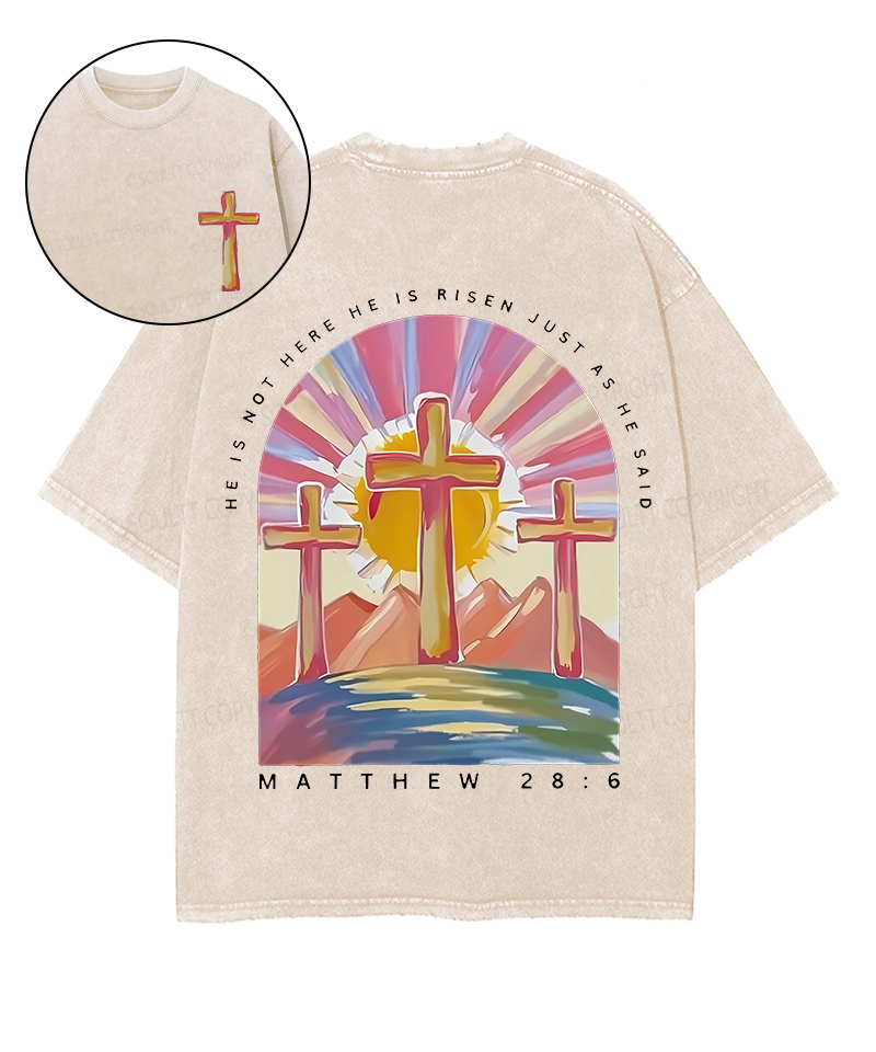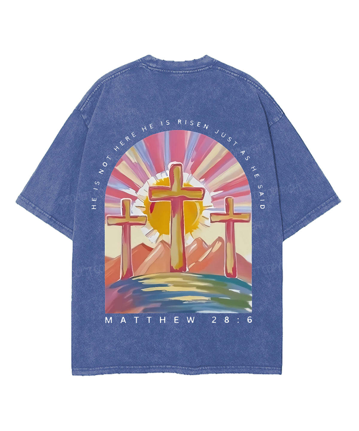 He Is Not Here Is Risen Just As He Said Double Sided Unisex Washed Christian T-shirt