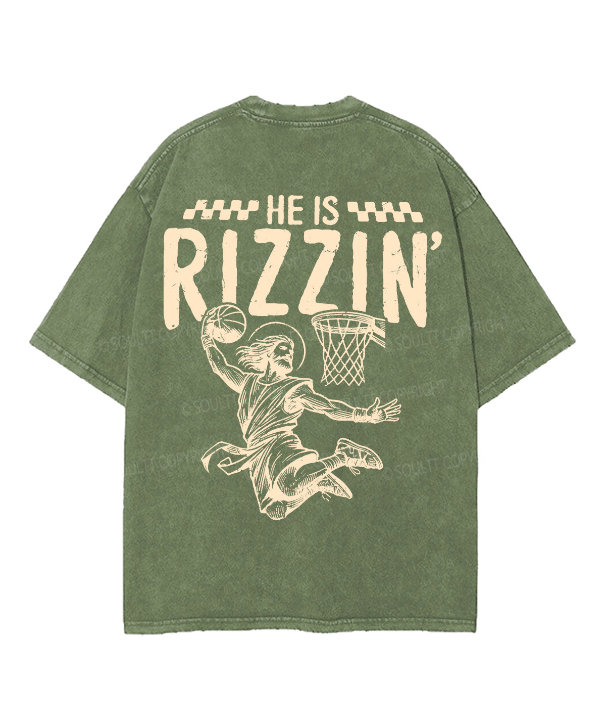 He Is Rizzin' Double Sided Unisex Washed Christian T-shirt