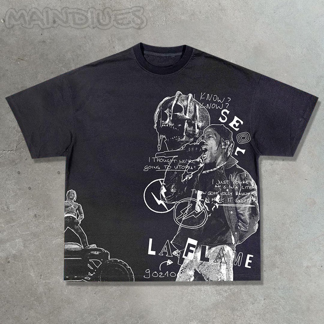 Hip-hop rap casual street retro print T-shirt