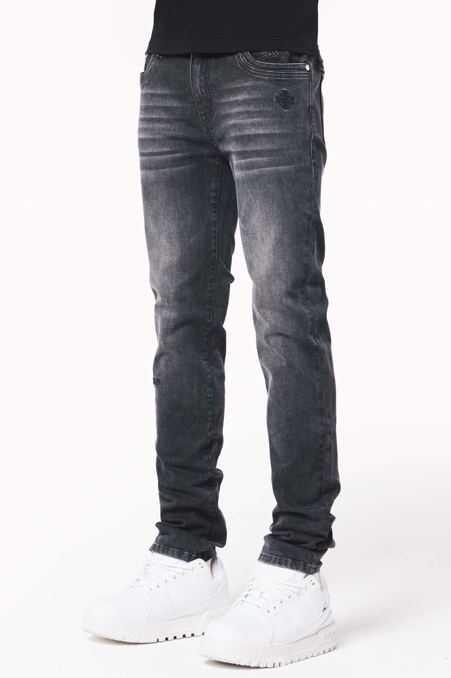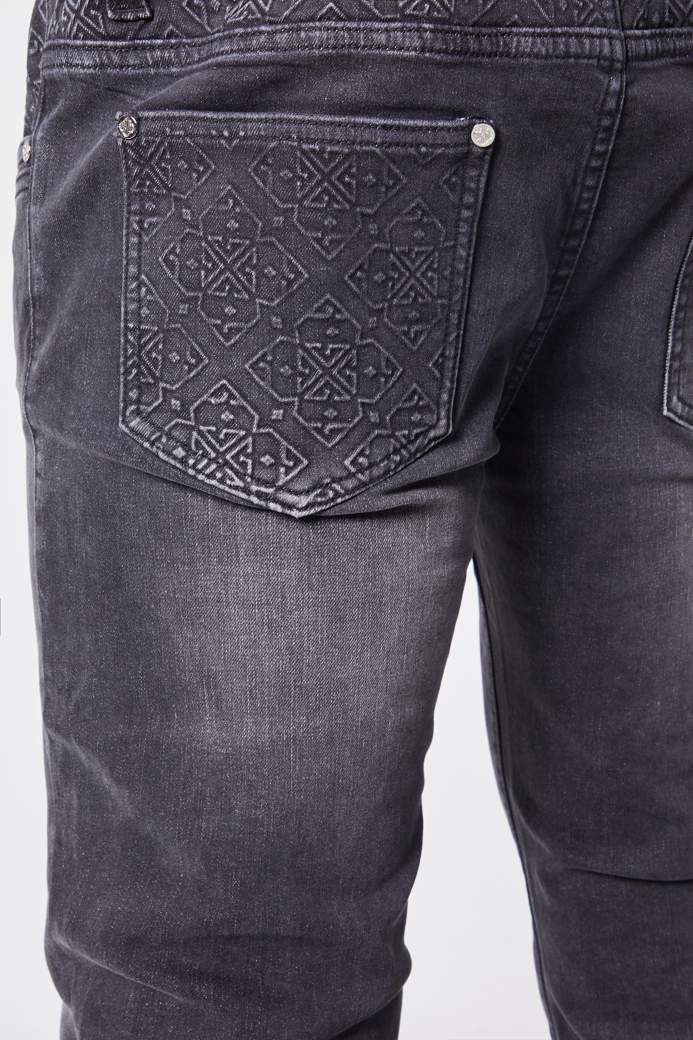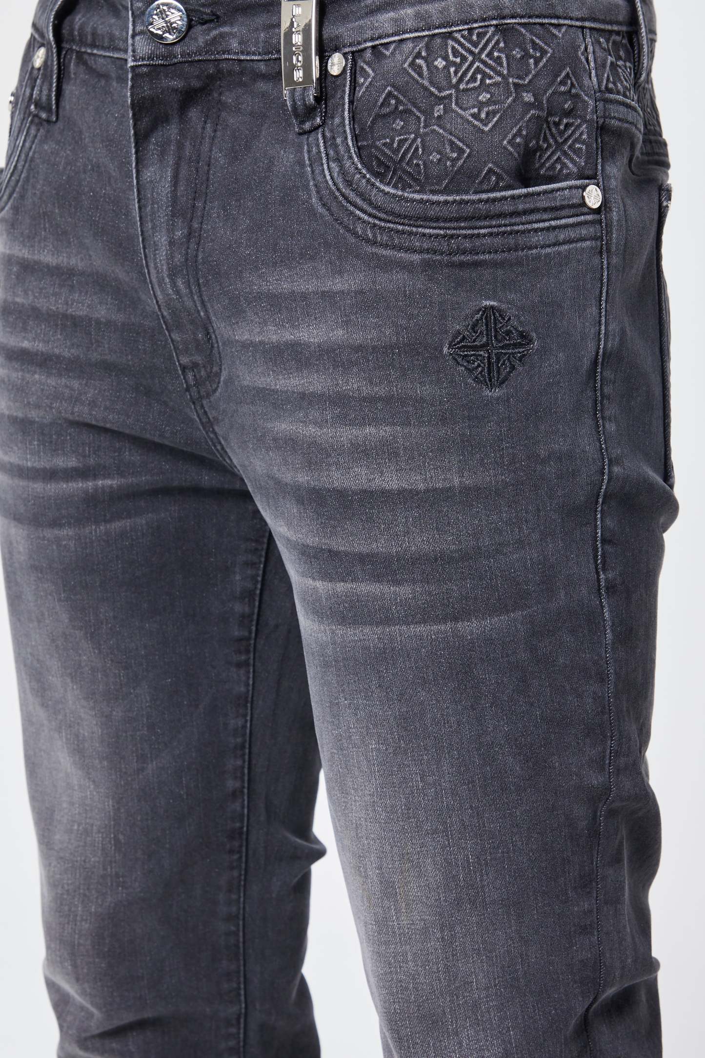 Thoughtful branding details, such as the GUAPI logo embroidered on the lower right leg, an icon embroidered near the front right pocket, and an embossed icon on the back pocket, add a subtle yet stylish edge to this classic piece. Designed with durability and all-day comfort in mind, this denim is perfect for effortless styling on any occasion.