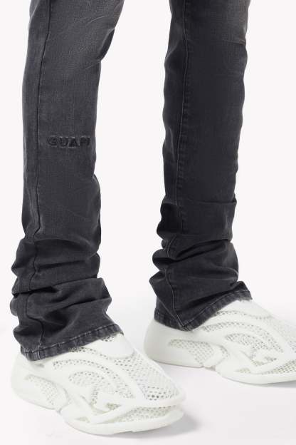 We manufacture our denim using a blend of luxury fabrics to ensure the highest comfort level and apply a fit that stacks below the knee.