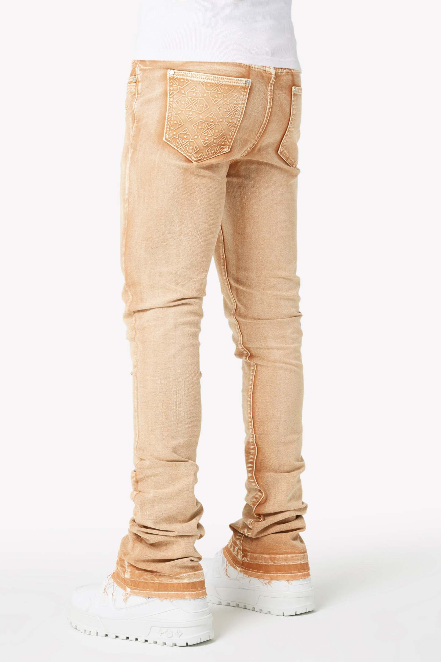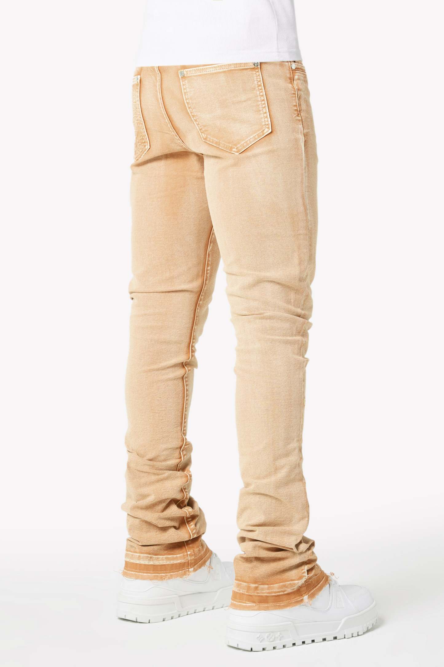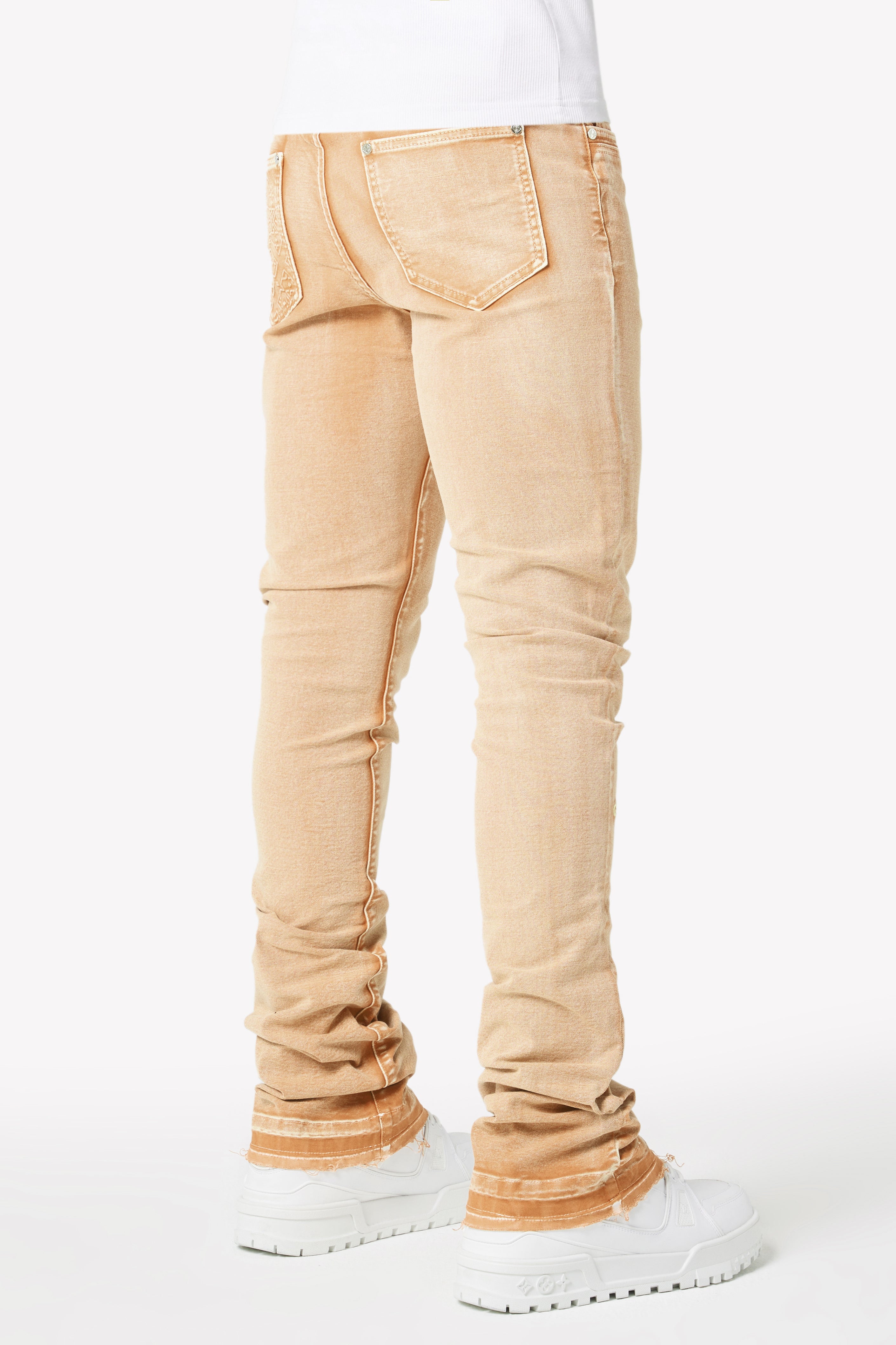 We manufacture our denim using a blend of luxury fabrics to ensure the highest comfort level and apply a fit that stacks below the knee.