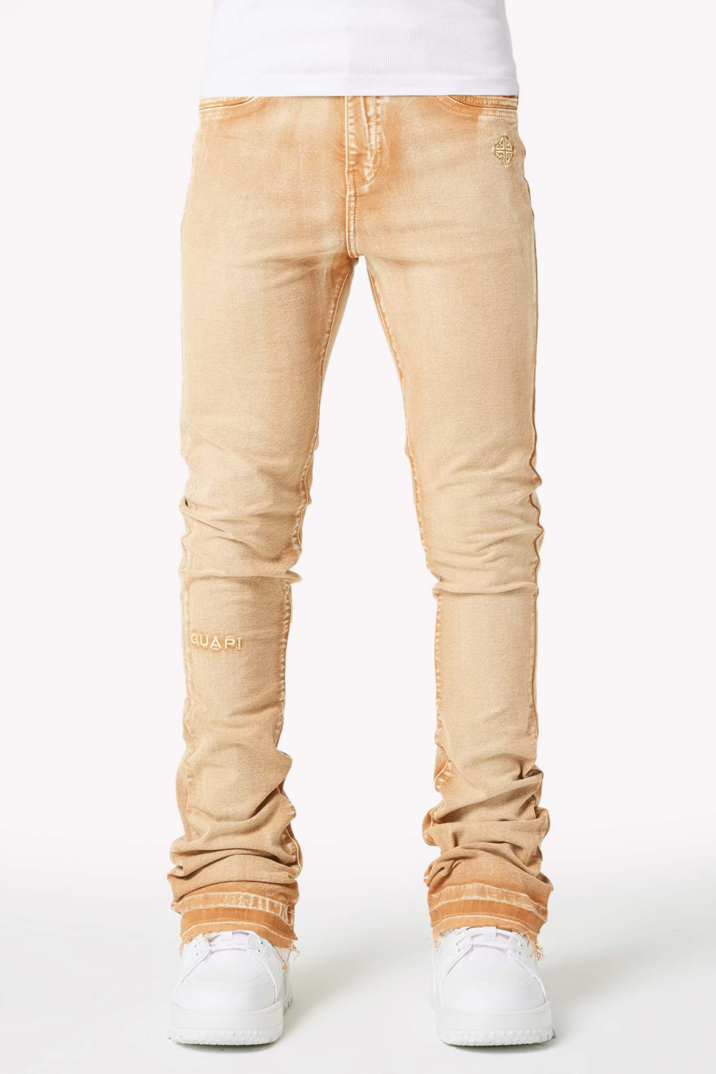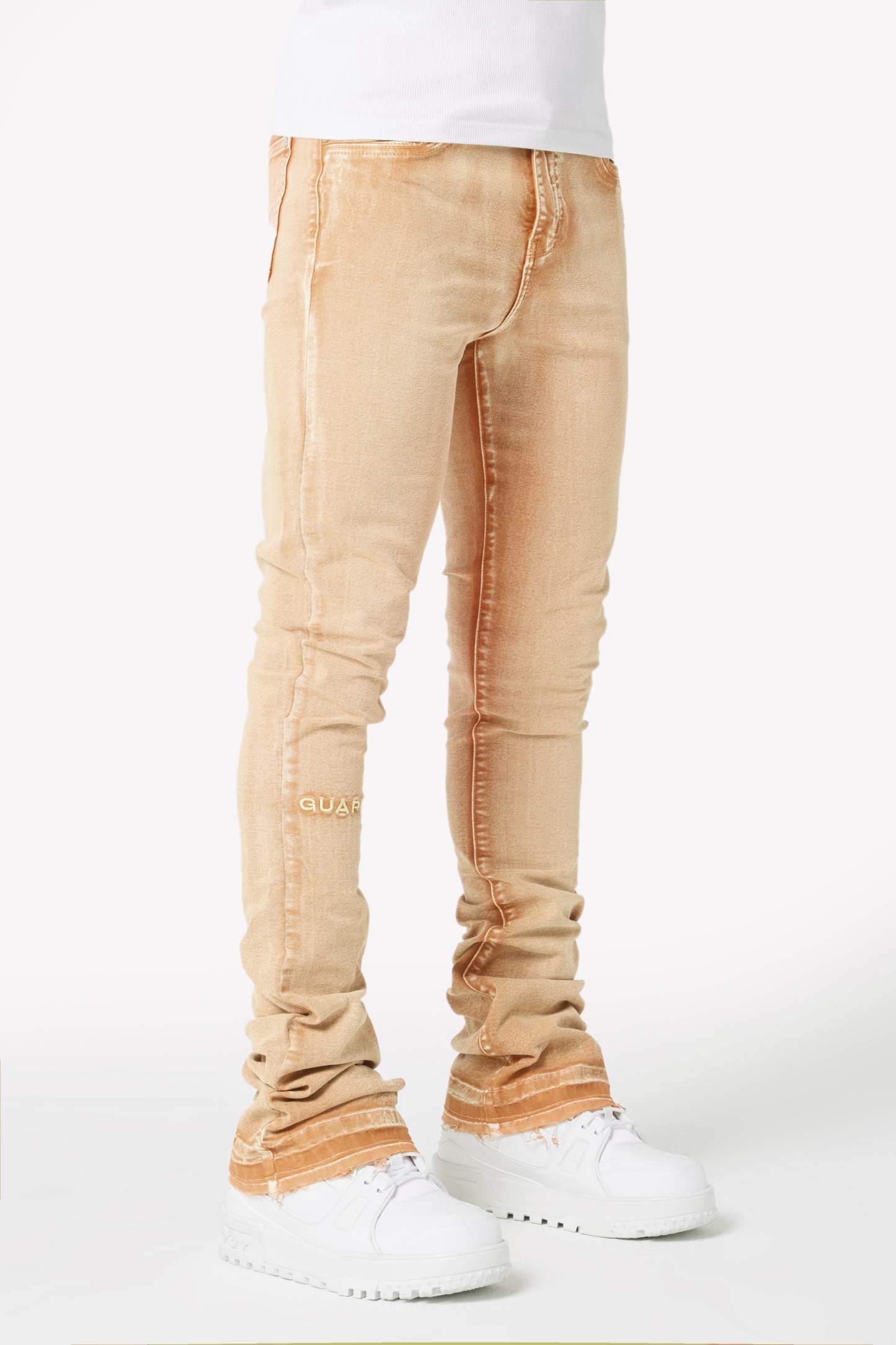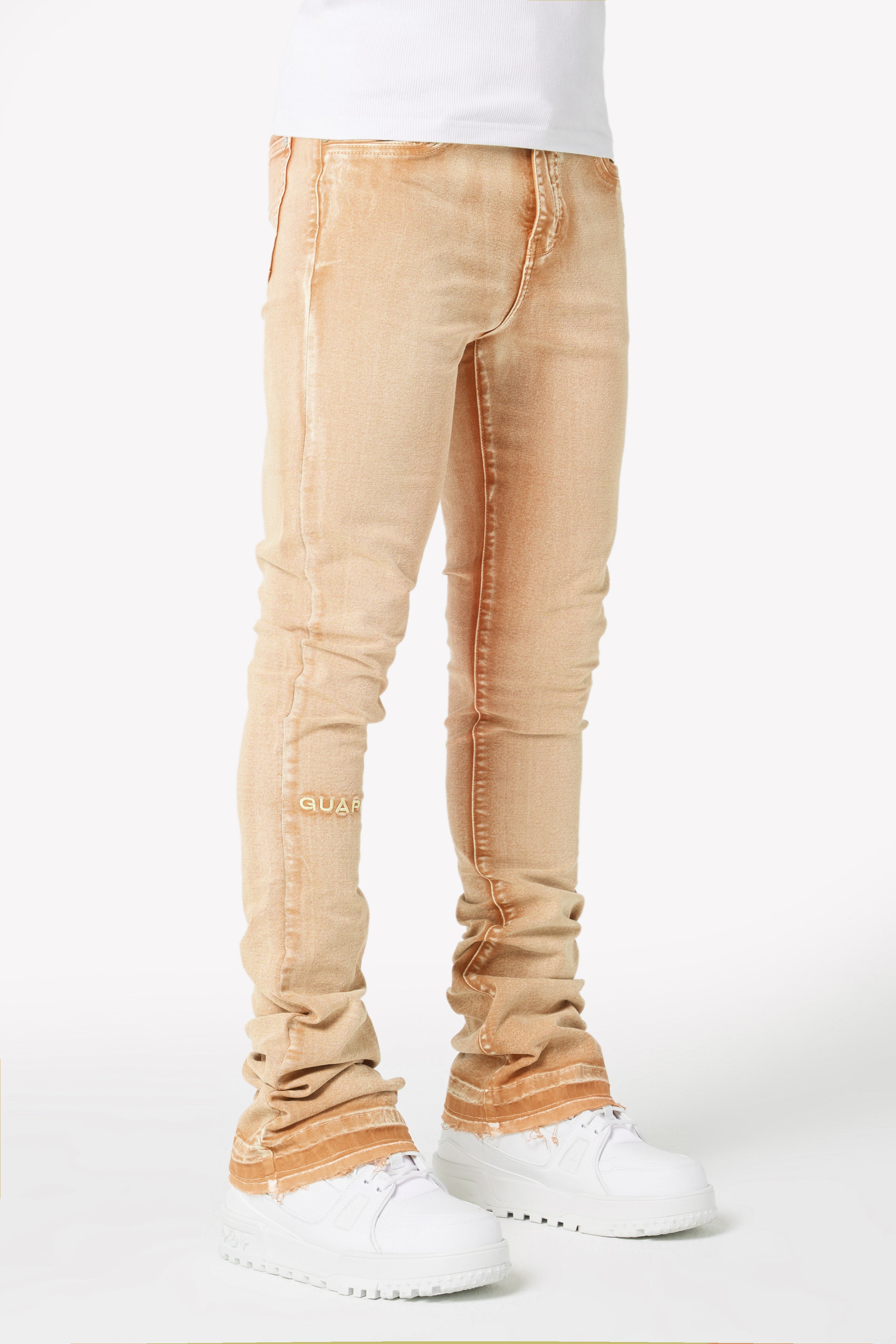 We manufacture our denim using a blend of luxury fabrics to ensure the highest comfort level and apply a fit that stacks below the knee.