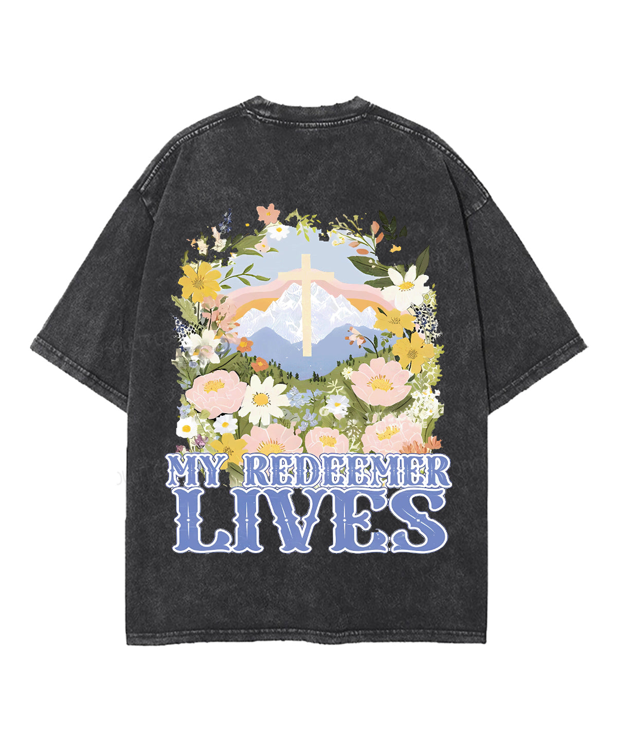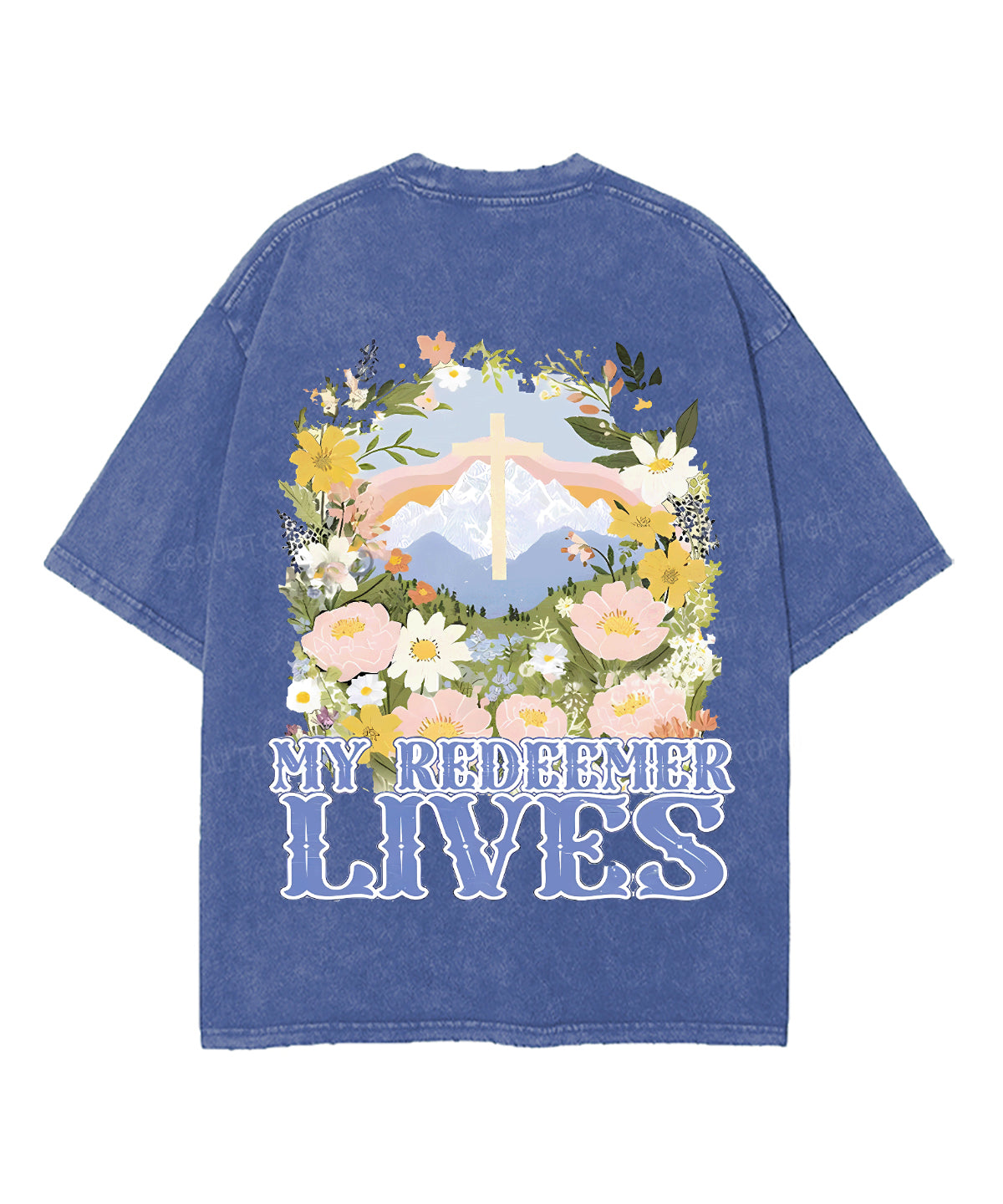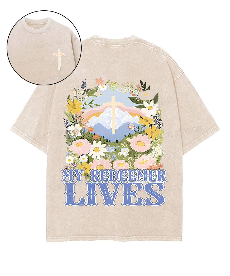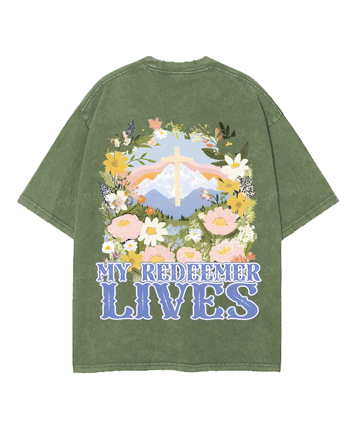 My Redeemer Lives Double Sided Unisex Washed Christian T-shirt