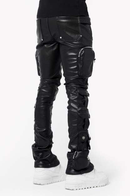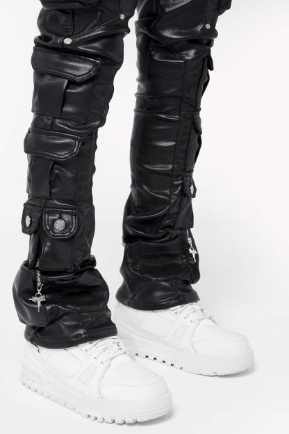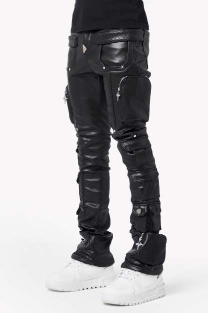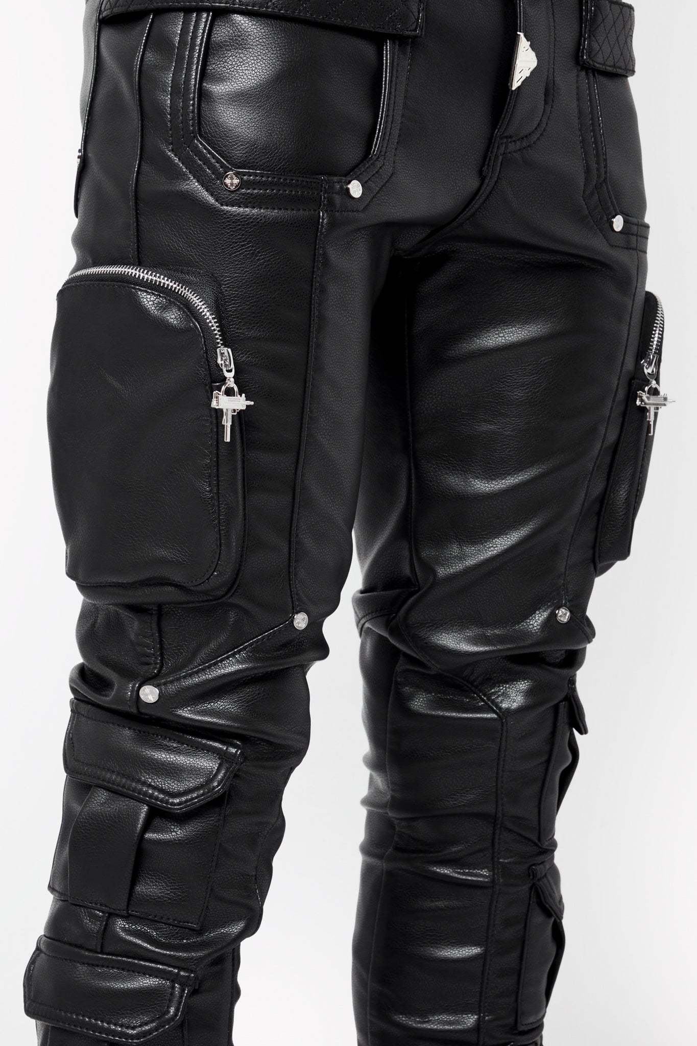 Elevate your streetwear aesthetic with the Obsidian Black Cargo Leather Pants. Designed for bold statement-making, these pants fuse luxury and functionality. Crafted from premium faux leather, they feature a sleek, glossy finish that embodies modern sophistication. The intricate detailing — including quilted accents, multiple cargo pockets, and silver-tone hardware — provides a utilitarian edge while maintaining a refined silhouette. Perfect for those who dare to blend high fashion with urban street culture, these pants are your ultimate go-to for setting trends.