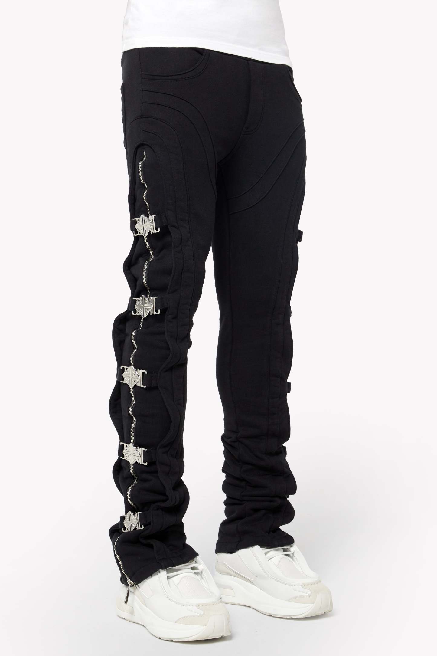Step into unparalleled comfort and style with GUAPI’s Obsidian Black Premium Sweat Pants. These pants blend streetwear aesthetics with practical detailing, featuring dynamic stitched paneling and metallic zip and buckle accents along the leg. Designed with premium-quality materials, these sweatpants provide a comfortable yet stylish fit, perfect for any casual occasion or urban adventure. Ideal for those who want to stand out, these pants are more than just a wardrobe staple—they’re a statement piece.