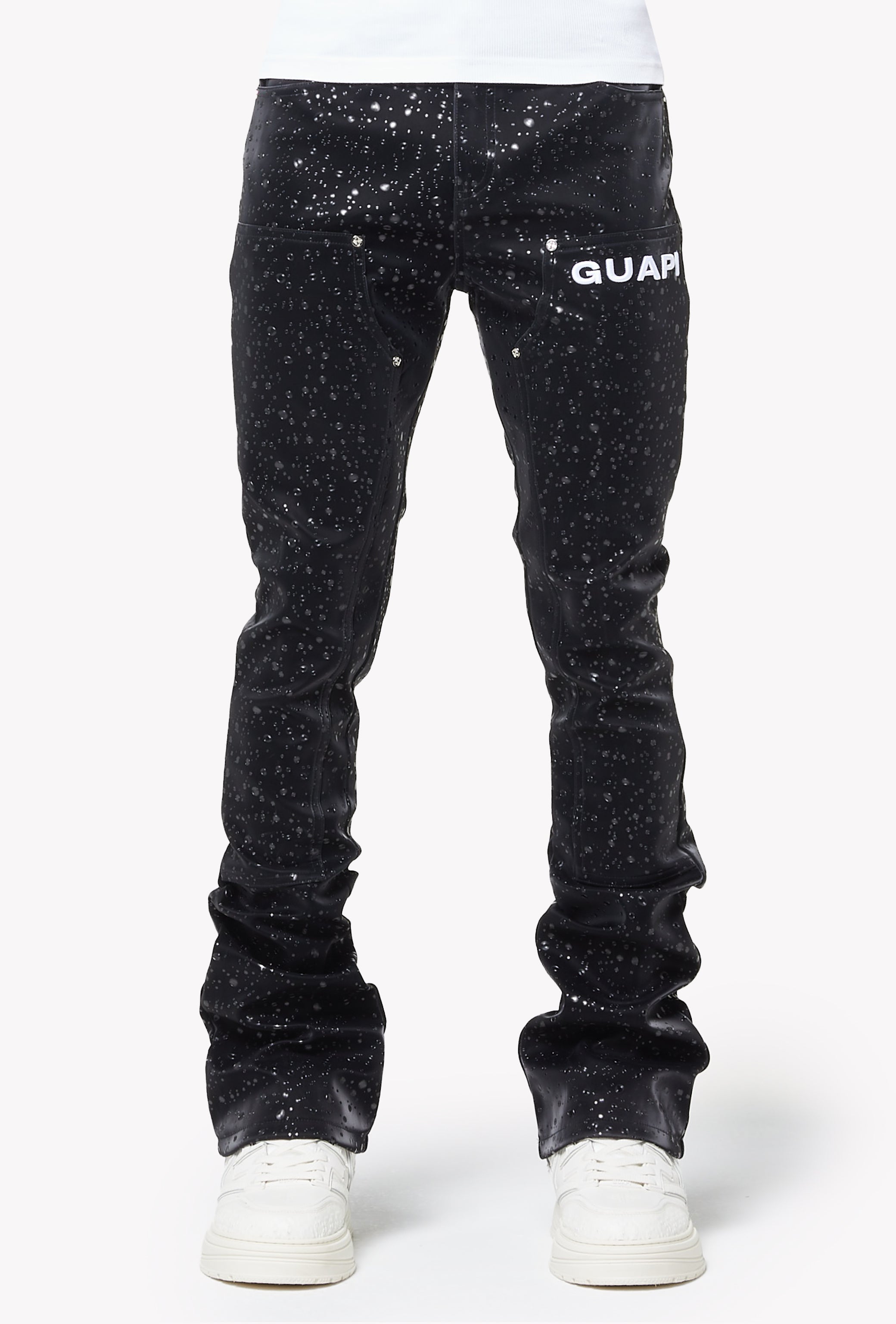 Designed with a slim profile and natural stacking, the silhouette enhances the legs while maintaining comfort and flexibility. White GUAPI branding is placed prominently on the front thigh, adding a bold contrast against the dark, reflective base.