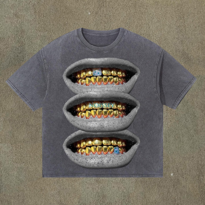Personalized Gold Teeth Print Short Sleeve T-Shirt