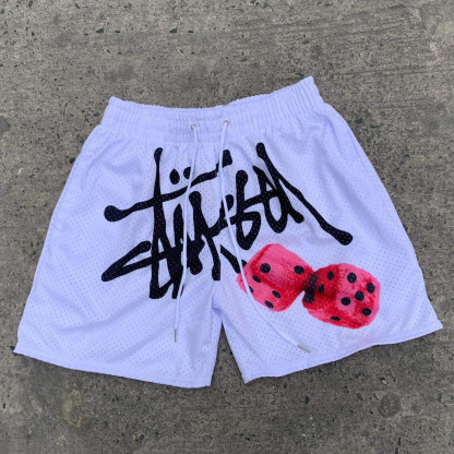 Personalized Letter Dice Print Mesh Pocket Shorts