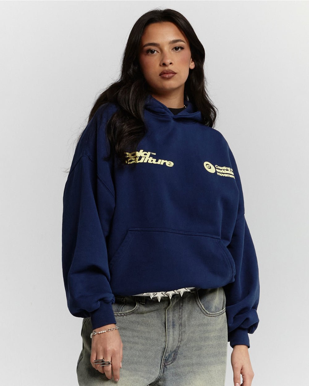 Square cut hooded sweatshirt.