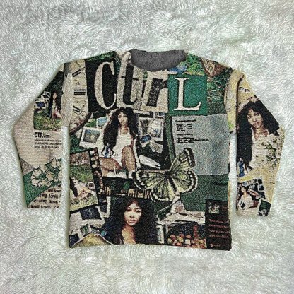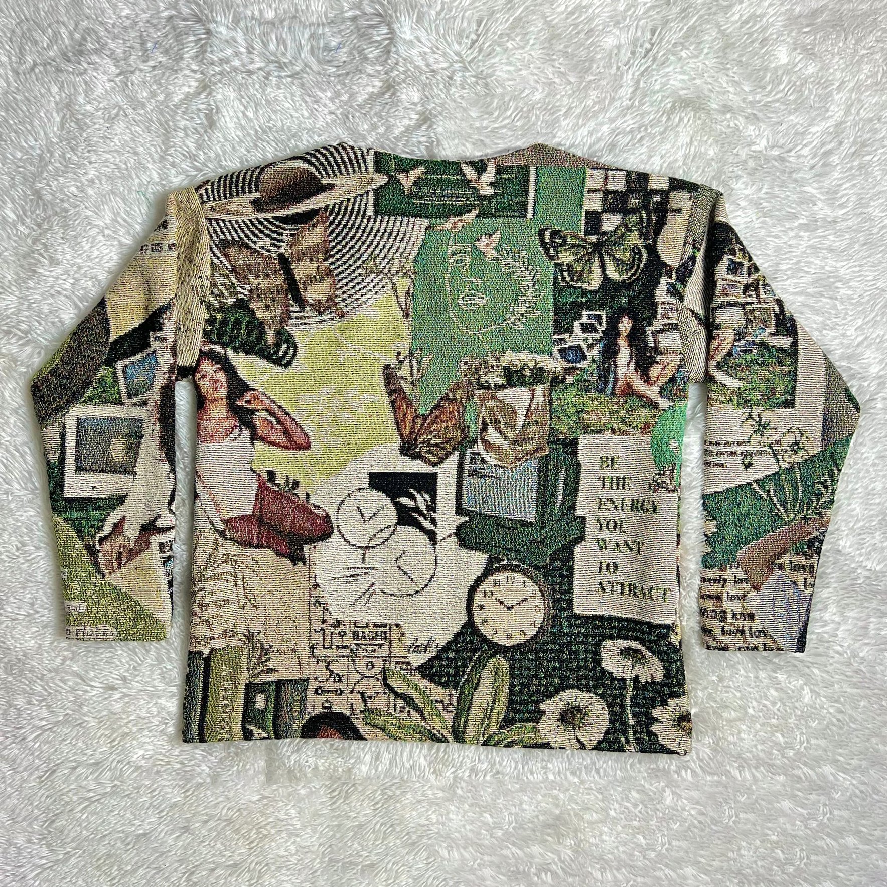 Retro Pattern Tapestry Crew Neck Sweatshirt