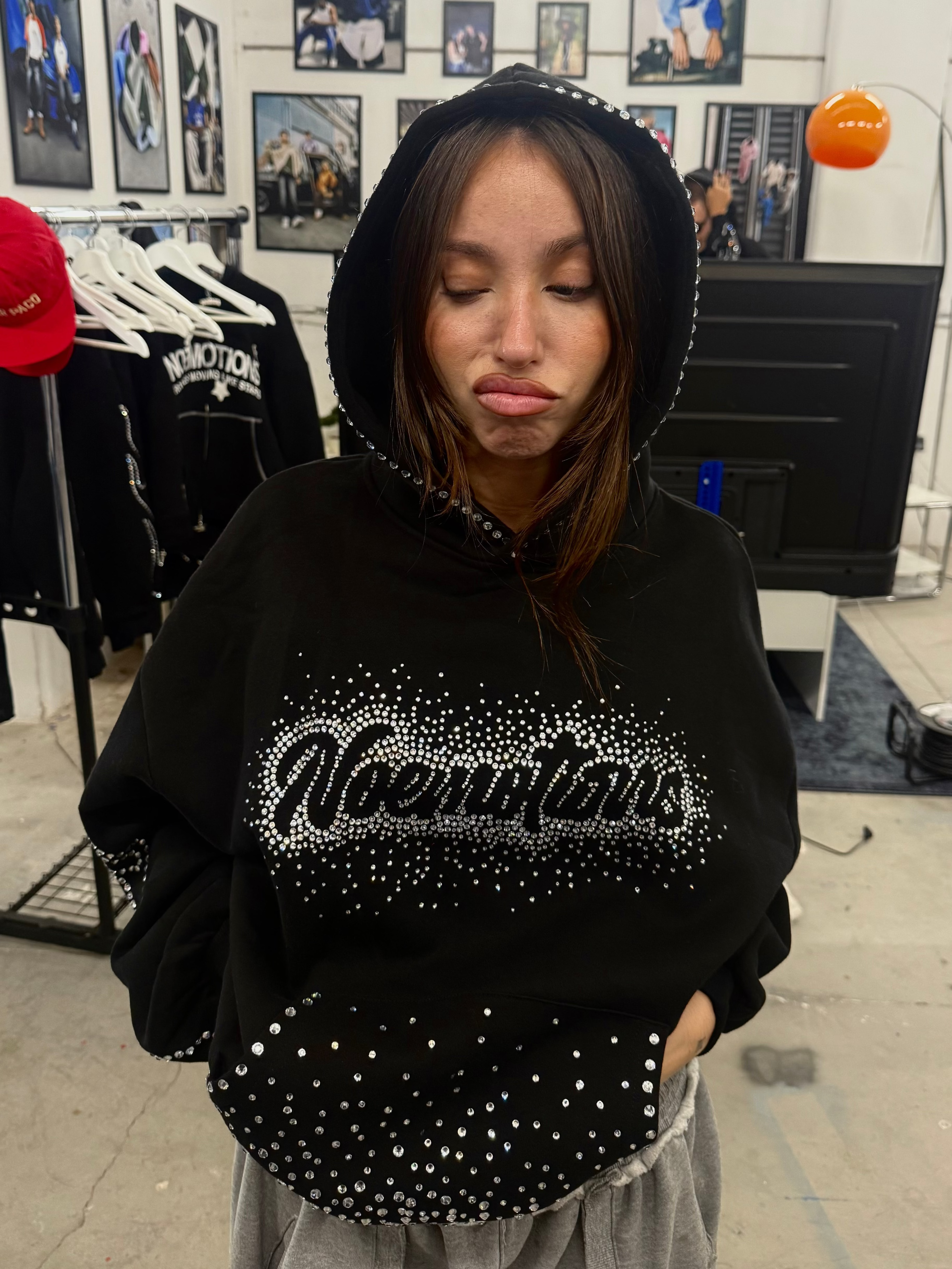 RHINESTONES HOODIE BLACK