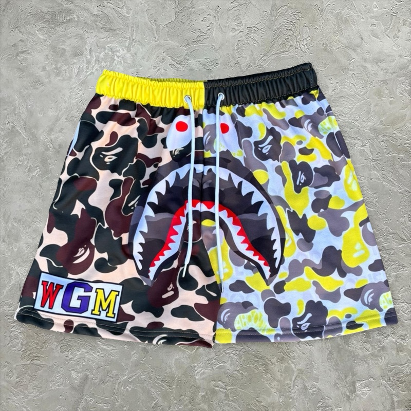 Street Style Color-Blocked Camouflage Mesh Shorts