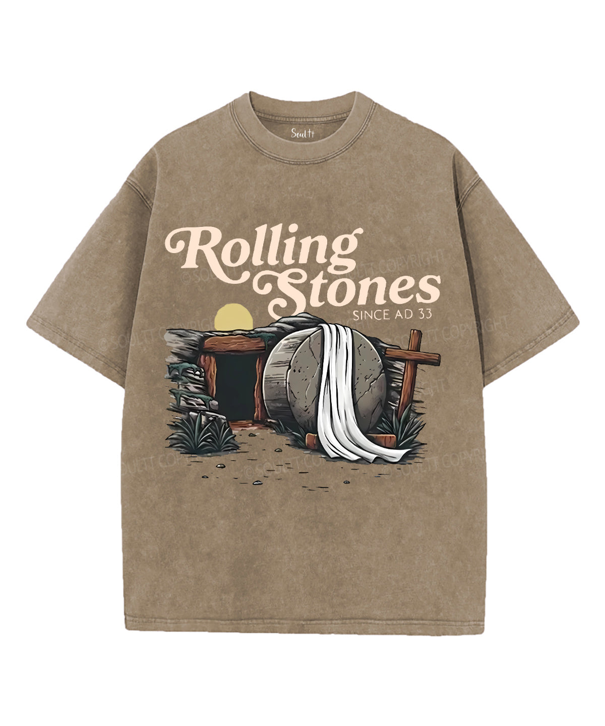 The Stone Was Moved, And He Came Back To Life. Unisex Washed Christian T-shirt