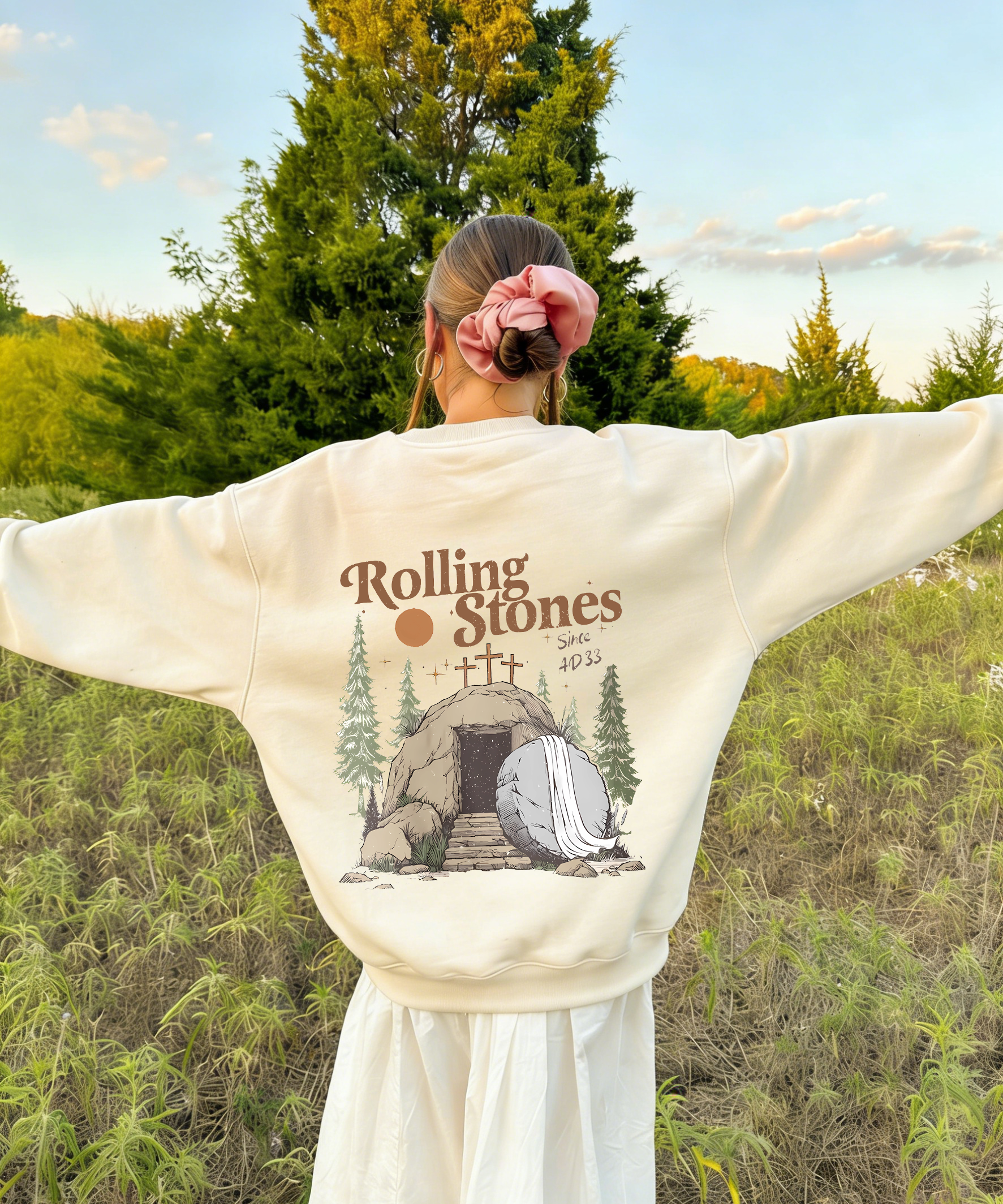 The Stone was Rolled Away He is Alive Double Sided Unisex Christian Sweatshirt
